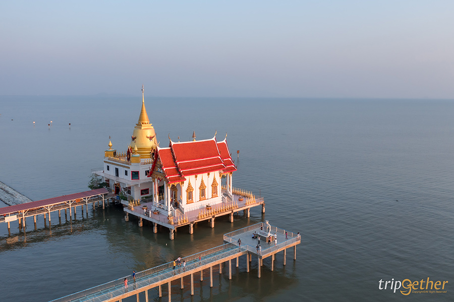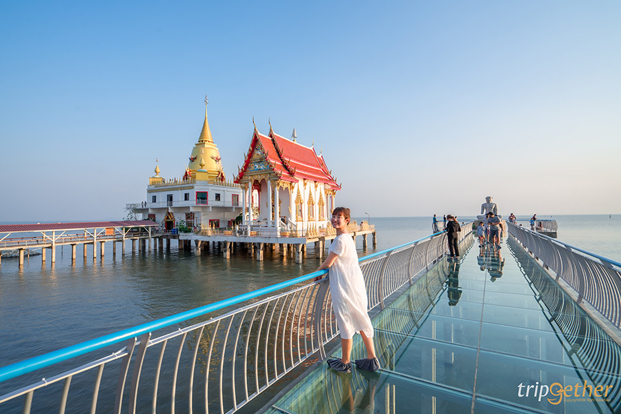 วัดหงษ์ทอง ที่ตั้งอยู่ในอำเภอบางปะกง ติดทะเลฝั่งอ่าวไทย มีจุดเด่นอยู่ที่พระธาตุคงคามหาเจดีย์ 3 ชั้น และโบสถ์ที่ยื่นลงทะเลให้ได้พุทธศาสนิกชนสักการะพระพุทธรูปต่างๆ มากมายเช่น พระธาตุพระอรหันต์ หลวงพ่อพุทธโสธรจำลอง หุ่นขี้ผึ้งรูปเหมือนจริงของหลวงปู่สด และพระพุทธชินราชจำลองที่เป็นพระประธานในโบสถ์ ไม่เท่านั้นทางวัดยังมีแลนด์มาร์กใหม่อย่าง sea walk แห่งแรกของประเทศไทย เป็นทางเดินกระจกยาว 40 เมตร ยื่นลงทะเลให้เดินชมวิวแบบเต็มๆ ตา ซี่งปลายทางยังมีพระพุทธรูปประดิษฐานอยู่ด้วย นอกจากนั้นใครอยากชมวิวทะเลและวัดจากมุมสูงก็สามารถจ่ายค่าบำรุงลิฟต์ขึ้น-ลงคนละ 20 บาท ไปที่ชั้น 12 ของอาคารกตัญญูเพื่อชมวิวสวยๆ กันได้อีกด้วย แอบกระซิบว่าถ้ามาในช่วงเย็นตอนพระอาทิตย์กำลังตกบรรยากาศดีแถมแสงสวยสุดๆ