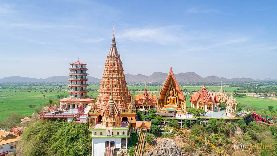 พามาทำบุญต่อกันที่ กาญจนบุรี ที่เที่ยวใกล้ๆ กรุงเทพ กับ วัดถ้ำเสือ วัดสวยบนเขา ล้อมรอบด้วยทุ่งนา จุดเด่นของแห่งวัดนี้คือ หลวงพ่อชินประทานพร เป็นพระพุทธรูปปางประทานพร สีทองอร่ามตั้งตระหง่านอยู่กลางวัดบนเนินเขา สูง 9 วา 9 นิ้ว หน้าตัก 5 วา 3 ศอก 9 นิ้ว พระอิริยาบถนั่งขัดสมาธิปางประทานพร รอบองค์พระมีเรือนแก้วครอบลักษณะเดียวกับพระพุทธชินราช เรียกว่าเป็นหนึ่งในพระพุทธรูปที่สูงที่สุดในประเทศไทย งดงามอลังการมากๆ ถ้าใครได้มาเที่ยวจังหวัดกาญจนบุรี ต้องไม่พลาดที่จะแวะมาที่นี่
