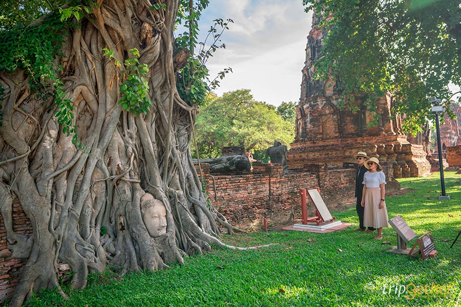 วัดแห่งเสน่ห์และมนต์ขลังของจังหวัดอยุธยา ตั้งอยู่เชิงสะพานป่าถ่านด้านทิศตะวันออกของวัดพระศรีสรรเพชญ์ ภายในวัดประดิษฐานพระบรมธาตุใจกลางพระนคร สำหรับไฮไลท์ของวัดมหาธาตุแห่งนี้คือ เศียรพระพุทธรูปหินทราย ที่มีรากโพธิ์ปกคลุมให้มีความงดงามแปลกตาเป็นมุมไฮไลท์ที่ต้องแวะมาถ่ายรูปที่มุมนี้ ตามมาด้วยมุมเจดีย์แปดเหลี่ยม เป็นเจดีย์ 4 ชั้น 8 เหลี่ยม ซึ่งชั้นบนสุดประดิษฐานปรางค์ขนาดเล็กแปลกตามีเพียงองค์เดียวในจังหวัดอยุธยา ใครมีโอกาสเดินทางมาจังหวัดอยุธยาต้องแวะที่ วัดมหาธาตุ