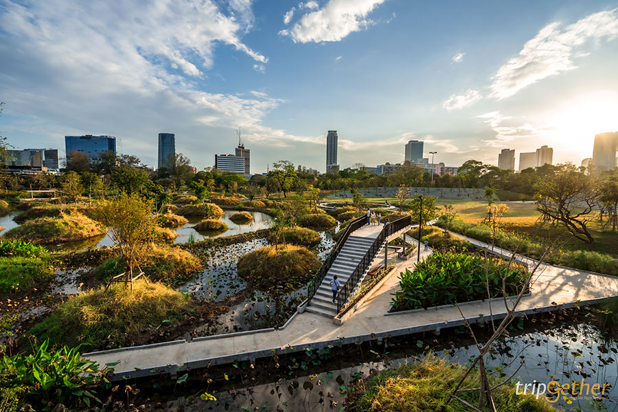 เอาใจคู่รักสายถ่ายรูปกันอีกสักหนึ่งที่ สวนป่าเบญจกิติ สวนสาธารณะเปิดใหม่บรรยากาศดีที่ปรับปรุงขึ้นใหม่ใหม่ในที่ดินของโรงงานยาสูบเก่า ซึ่งอยู่ด้านหลังของสวนเบญจกิติเดิม เป็นพื้นที่สำหรับนั่งพักผ่อนชมนกชมไม้และเป็นพื้นที่ออกกำลังกายที่มีทางสำหรับวิ่งและปั่นจักรยานแยกเลนกันอย่างชัดเจน และไฮไลท์สำหรับสายถ่ายรูปจะต้องไม่พลาดกับโซนทางเดินลอยน้ำทอดยาวสามารถเห็นวิวของเกาะต้นไม้กลางบึงที่ไม่ได้สร้างขึ้นเพื่อความสวยงามเท่านั้น แต่เพื่อยกรากต้นไม้ให้สูงขึ้นทำให้ต้นไม้สามารถซึมซับน้ำได้ดีขึ้นและยังช่วยลดอุณหภูมิของพื้นที่ในสวนอีกด้วย แนะนำให้มาช่วง 4 – 5 โมงเย็นเพราะแสงกำลังสวยแถมบรรยากาศดี เหมาะเป็นสถานที่เดตในกรุงเทพฯ สุดๆ