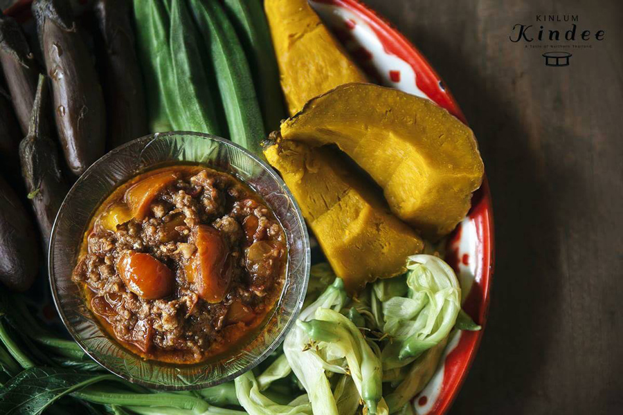 น้ำพริกประจำภาคเหนืออีกชนิดหนึ่ง สีสันแดงและส้มสดจากมะเขือเทศและพริกแห้งผัดกับหมูจนได้น้ำพริกที่ขลุกขลิก รสชาติเปรี้ยว เค็ม เผ็ด ทานคู่กับผักสดต่างๆ รสชาติดีไม่แพ้น้ำพริกหนุ่มเลยนะเจ้า