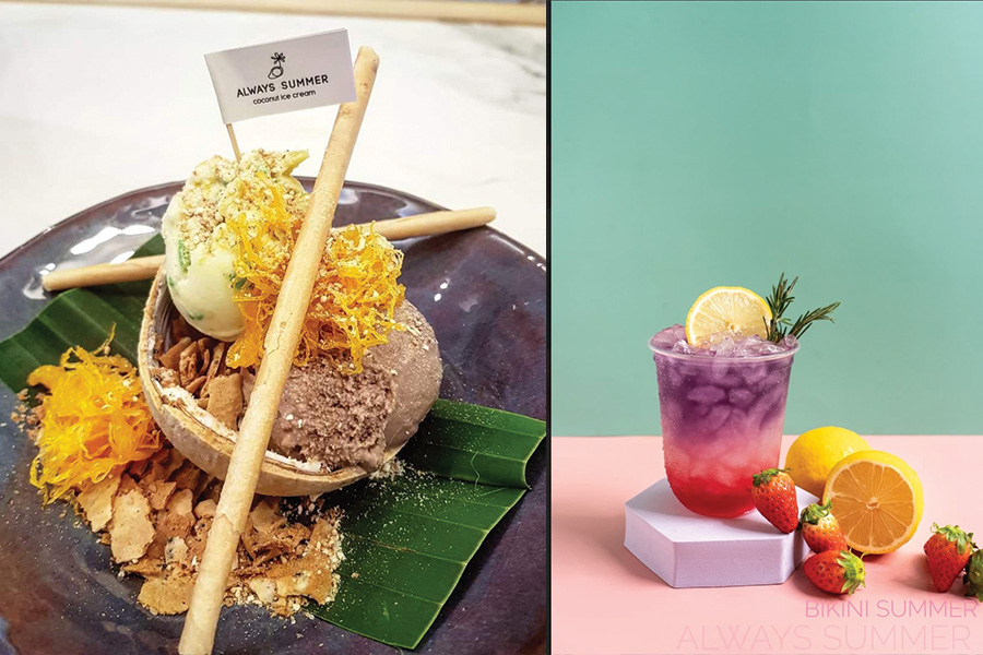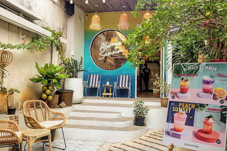 Always Summer Coconut Ice Cream คาเฟ่ไอศกรีมในตรอก ‘หงอคาขี่’ เสิร์ฟความอร่อยด้วยไอติมกะทิโฮมเมด Always summer Tea ชาพีชและน้ำมะม่วงให้รสชาติเปี้ยวสดชื่นสุดๆ Phuket Old Town with yellow attitude มะม่วงน้ำดอกไม้ปั่นหวานอมเปี้ยวดีต่อใจมาก ตัวร้านตกแต่งสไตล์ทรอปิคอลฟีลเหมือนไปนั่งชิลล์คาเฟ่ริมทะเล พร้อมการตกแต่งด้วยเก้าอี้หวาย เก้าอี้ริมชายหาด รับรองว่าได้รูปสวยแน่นอน