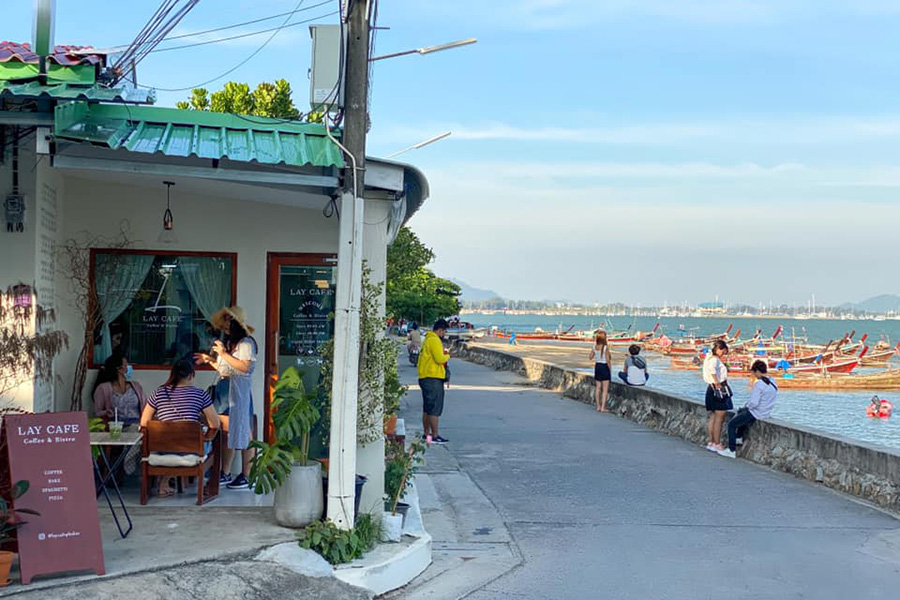 Lay Cafe คาเฟ่ในคอนเซ็ปต์ร้านที่ได้รับแรงบันดาลใจมาจากปูซาน เกาหลีใต้ เจ้าของร้านได้ไปเท่ียวมาแล้วชอบมากจึงนำมาเป็นคอนเซ็ปต์ร้านน่ารักๆ ด้วยการตกแต่งสไตล์มินิมอลโทนสีขาวนวล มีมุมไฮไลท์เป็นกระจกบานใหญ่นั่งมองวิวทะเลได้แบบใกล้ชิด สำหรับเมนูอร่อยมีทั้ง Espresso Coconut Blossom Sugar กาแฟน้ำตาลดอกมะพร้าวและเบเกอรี่โฮมเมดทำเอง พร้อมด้วยพิซซ่าที่รังสรรค์แป้งเองให้รสชาติที่เป็นซิกเนเจอร์ของร้านโดยเฉพาะ เป็นอีกหนึ่งร้านน่ารักๆ ริมทะเลที่น่าแวะไปชิลล์!