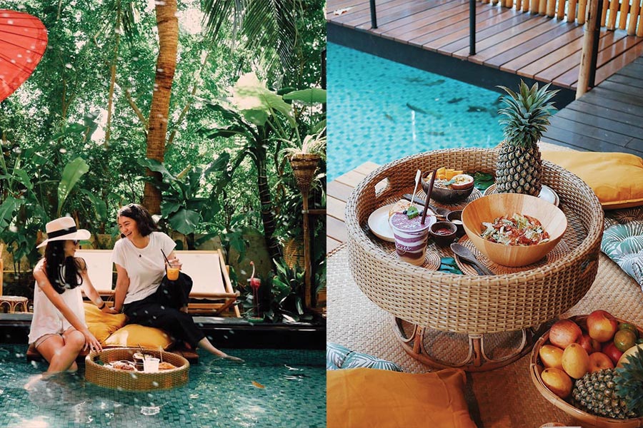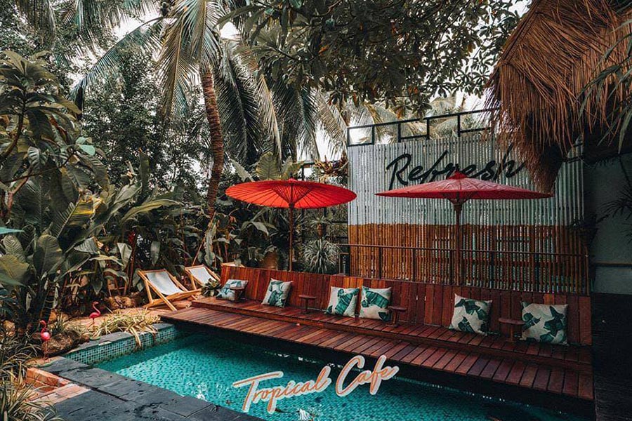 หลบร้อนมาชิลล์ที่ Refresh Tropical Cafe คาเฟ่สไตล์บาหลีตกแต่งด้วยเฟอร์นิเจอร์หวายและไม้ไผ่ พร้อมมุมสระว่ายน้ำเติมแต่งกลิ่นอายของความเป็นทรอปิคอลในป่าเขตร้อนชื้นสุดร่มรื่นเหมาะออกมานั่งจุ่มขาฟินๆ เสิร์ฟเมนูอร่อยอย่าง Mix Berries Bowl ที่มีเบสรสตรอว์เบอร์รี่ บลูเบอร์รี่ ราสป์เบอร์รี่ และกล้วยหอม, น้ำผลไม้สกัดเย็น, มะยงชิดลอยแก้ว, มะยงชิด BOWL และอีกหลากเมนูที่บอกเลยว่าสายสุขภาพไม่ควรพลาด