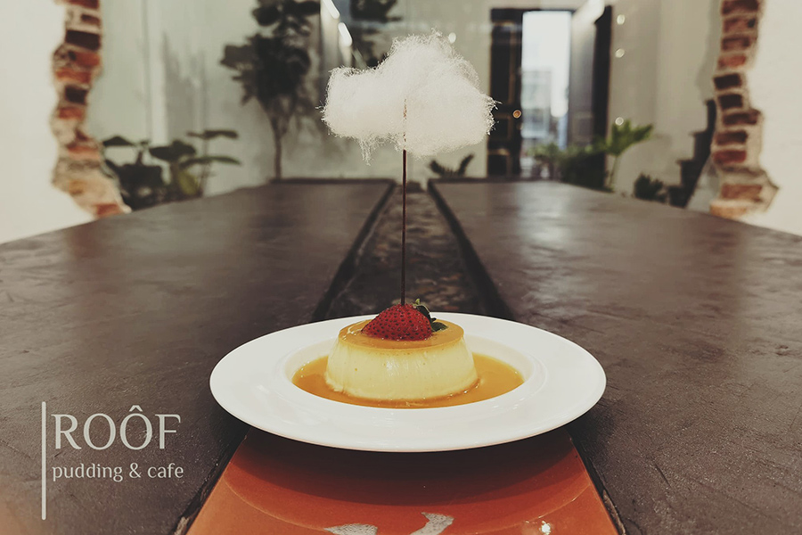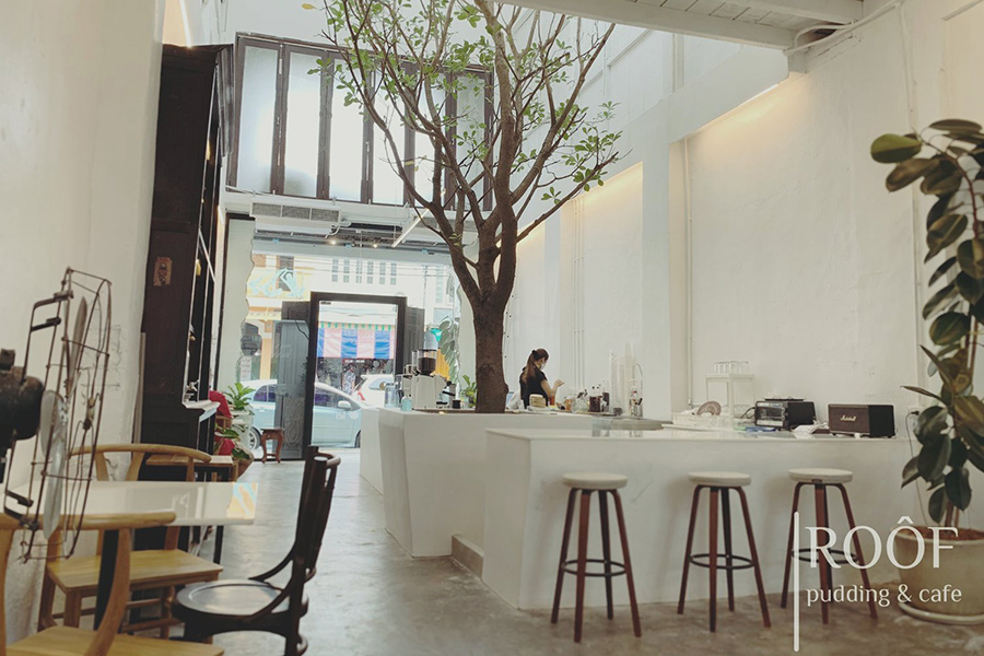 ROÔF Pudding & Cafe คาเฟ่มินิมอลใจกลางเมืองที่มีกิมมิกน่ารักๆ ด้วยต้นไม้ตั้งอยู่กลางร้าน ภายใต้การตกแต่งแบบเรียบง่ายคลุมโทนสีขาว พร้อมด้วยหลังคาทรงสูงโปร่งให้แสงสาดส่องลงมายังต้นไม้ นอกจากนี้ยังมีสายน้ำเล็กๆ ไหลผ่านโต๊ะให้ฟีลผ่อนคลายไปกับเสียงน้ำตกเล็กๆ ดีงามมาก พร้อมเสิร์ฟเมนูหลากหลายอย่าง Orange black coffee, Pink Caramel, Pudding Toast, Danish, Scones, Cinnamon, Cheese Cake และอีกหลากหลายเมนูอร่อย