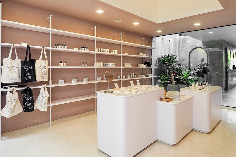 Sri the shophouse คาเฟ่มินิมอลสไตล์เกาหลีที่ซ่อนตัวอยู่ในตรอกซอยเล็กๆ ย่านเมืองเก่าภูเก็ต ตัวร้านโดดเด่นด้วยเอกลักษณ์ที่ไม่เหมือนใคร ด้วยการเลือกใช้ ‘สี’ แทนคาแร็กเตอร์ของบุคคล ด้วยความแตกต่างของสีในแต่ละบุคคลไม่เหมือนกัน พร้อมทั้งเลือกใช้เฟอร์นิเจอร์สไตล์มินิมอลผสมผสานด้วยมุมกระจกใสบานใหญ่ที่เปิดรับแสงสว่างธรรมชาติจากภายนอก มาพร้อมกิมมิกน่ารักๆ ในการตั้งชื่อโซนต่างๆ พ้องกับคำว่า ‘สี’ ที่เมื่อเปิดประตูเข้ามาเจอโซน C the Cafe หรือ Coffee Bar ที่มีโทนสีขาวสวย ตามมาด้วยโซน She the Store ช้อปของร้านที่รวบรวม Room Spray, Hand Cream และ Coconut Oil ต่อด้วยโซน Si the Restaurant เป็นโวนเอ้าท์ดอร์ของร้านที่น่าออกไปนั่งรับลมชิลล์ๆ และสุดท้ายเป็นโซน See the Gallery บริเวณชั้นลอยของร้านที่เน้นการตกแต่งแบบเรียบง่ายในกิมมิกมุมไฟนีออน ผสมผสานให้เข้ากับความทันสมัยได้เป็นอย่างดี!