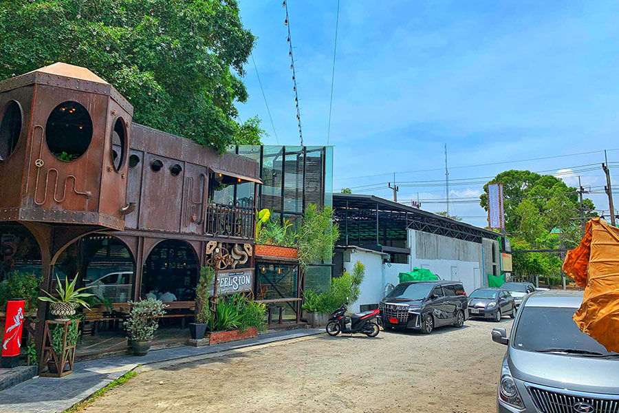 The Feelsion Cafe คาเฟ่สไตล์อินดัลเทรียลในย่านสะพานหินตกแต่งแบบฮิปๆ ตัวร้านมี 2 ชั้นของตกแต่งและพร็อกถ่ายรูปเยอะมาก ในส่วนของหลังคาร้านเป็นแบบโปร่งใสให้แสงธรรมชาติส่องเข้ามาได้อย่างดี ถ่ายรูปออกมาสวยมากๆ แสงดีมาก สำหรับเมนูซิกเนเจอร์ต้องลองเค้กโฮมเมดที่คิดค้นรสชาติและแต่ละเมนูใหม่ๆ เสิร์ฟความอร่อยแบบไม่เหมือนใคร รับรองเลยว่าใครที่ชื่นชอบการรับประทานขนมเบเกอรี่หวานๆ ต้องมาลองให้ได้เลย!