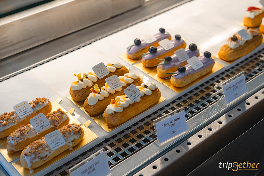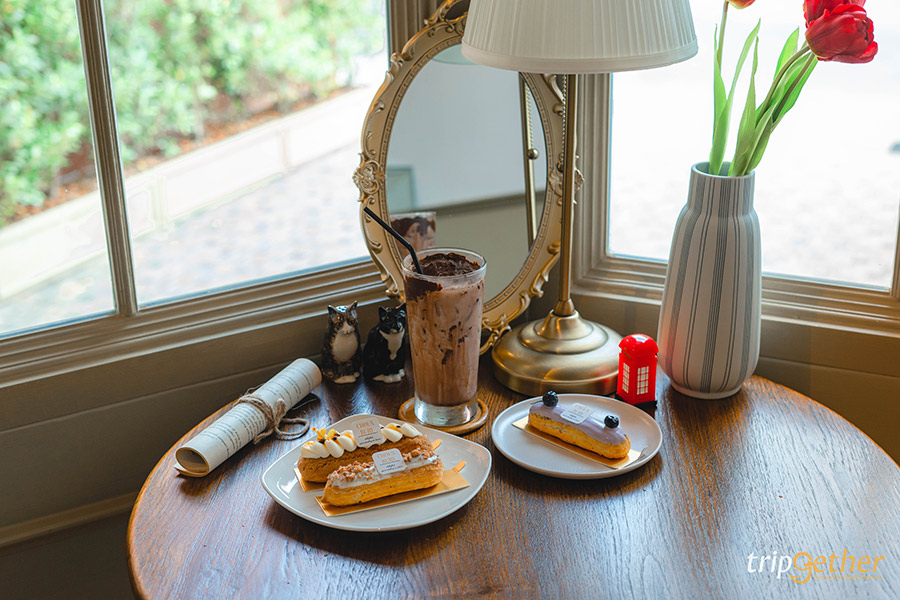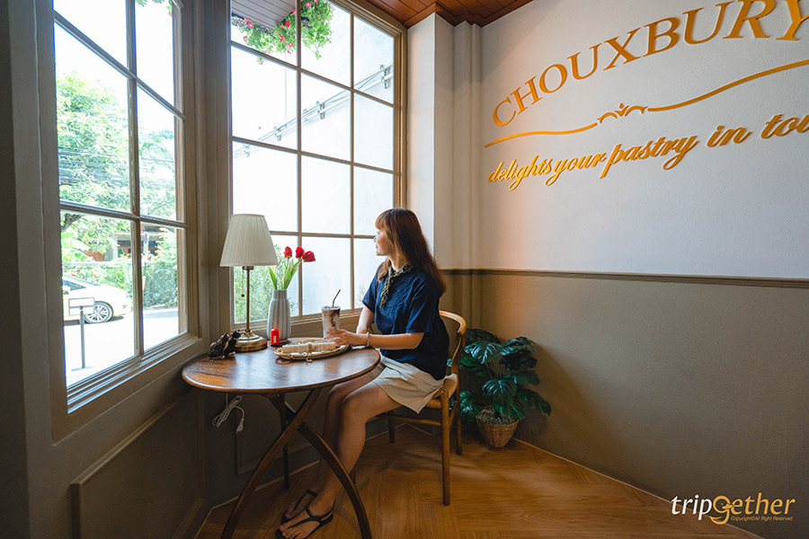 คาเฟ่สไตล์อังกฤษ Chouxbury ตั้งอยู่ที่ซอยนิมมานเหมินทร์ 7 ตัวร้านมี 2 ชั้น ตกแต่งอย่างสวยงามและคุมโทนสีที่ดูหรูหราให้ความรู้สึกถึงความเป็นยุโรปมากๆ ไฮไลท์ของร้านอยู่ที่ขนมเอแคลร์ หรือ Éclair รูปทรงรียาวหน้าตาน่ากิน อบสดใหม่ และมีหลากหลายรสชาติให้ได้เลือกเช่น Earl Grey Tea, Madagascar Vanilla, Busaba Cha-Thai, Triple Coffee และ Very Chocolatey บอกเลยว่าพอกัดแล้วด้านนอกกรอบด้านในมีความชุ่มของแป้งพรีเมียมสุดๆ นอกจากเอแคลร์แล้วทางร้านยังมีทั้ง Soft cookies, Puff pastry และเครื่องดื่มอย่างชา กาแฟ ให้สั่งมากินคู่กับเบเกอรี่แบบฟินๆ อีกด้วย Chouxbury เป็นอีกร้านที่บอกเลยว่านอกจากขนมอร่อยแล้วยังถ่ายรูปสวยน่าจดลงแพลนเที่ยวเชียงใหม่ในทริปต่อไปมากๆ