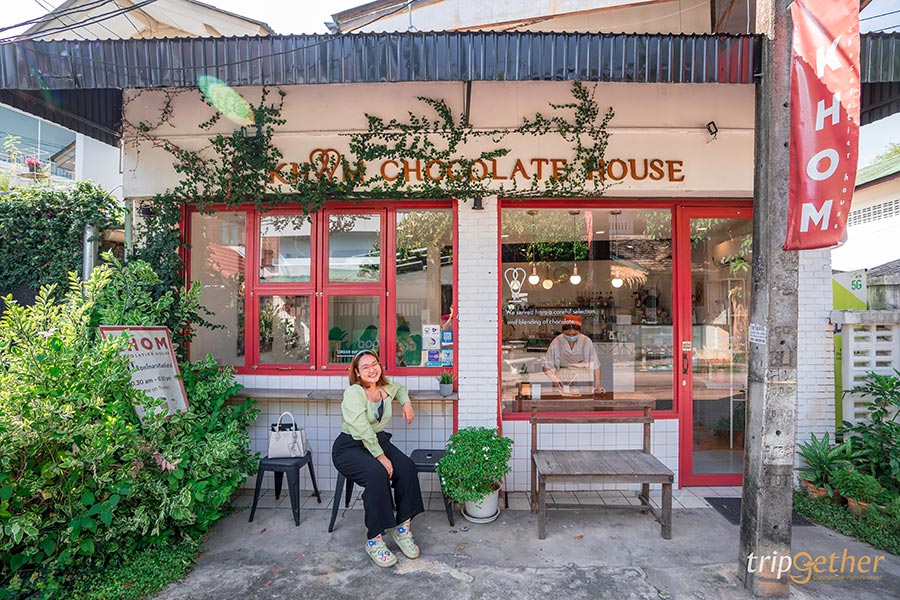 สายช็อกโกแลตเลิฟเวอร์ทางนี้เลย Khom Chocolatier House คาเฟ่เชียงใหม่ขนาดเล็กน่ารัก ที่เน้นเสิร์ฟเมนูจากช็อกโกแลตเป็นหลักไม่ว่าจะเครื่องดื่มหรือเบเกอรี่ ซึ่งทางร้านใช้เมล็ดโก้โก้ทั้งจากไทยและต่างประเทศ ทั้งมาจากอำเภอหางดง จังหวัดเชียงใหม่ และจากเมืองแห่งโกโก้ อย่างนครศรีธรรมราช ไม่เท่านั้นยังมีการนำเข้าจากต่างประเทศอีกด้วย เมนูแนะนำของร้านก็คือ Double Dark Chocolate, Triple Shot, Creamy Coconut, Refreshing Mint, Hot Spice Mexican, Fresh Orange, Soft Chocolate, Grizzly chocolate, Belgian chocolate dark 80%, Chewy Brownie, Basque burnt cheesecake, Chocolate cake และอื่นๆ อีกมากมายทั้งเมนูเครื่องดื่มและเบเกอรี่ บอกเลยว่าจัดเต็มเมนูช็อกโกแลตแบบสุดๆ ใครชื่นชอบช็อกโกแลตปักหมุดร้าน Khom Chocolatier House ไว้เลย