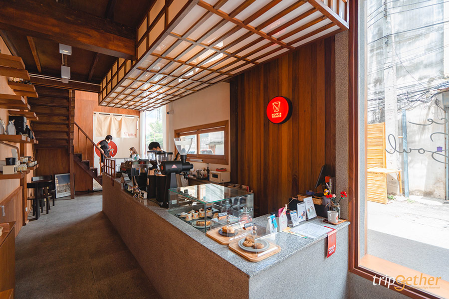 Koff and things คาเฟ่เชียงใหม่ตั้งอยู่ตรงข้ามประตูเมือง ที่เน้นการตกแต่งโดยใช้งานไม้เป็นหลัก ให้ความรู้สึกถึงกลิ่นอายสไตล์ญี่ปุ่น ที่อบอุ่น สบายๆ และเรียบง่าย ตัวร้านมี 2 ชั้น ชั้นแรกเป็นโซนเคาเตอร์สำหรับสั่งเครื่องดื่มชา กาแฟ และขนมต่างๆ มีที่นั่งไม่มาก สำหรับใครอยากนั่งชิลล์มองวิวประตูเมืองแนะนำให้เดินขึ้นไปหาโต๊ะนั่งที่ชั้น 2 กันได้เลย แอบกระซิบว่าที่ร้านมีมุมให้ถ่ายรูปสวยๆ หลายมุมไม่ว่าจะหน้าร้านที่เหมือนยกญี่ปุ่นมาไว้ที่เชียงใหม่ให้กดชัตเตอร์อัปรูปได้แบบรัวๆ หรือจะชั้น 2 ที่ริมหน้าต่างก็ญี่ปุ่นสุดๆ เหมือนกัน ไปเที่ยวเชียงใหม่ทริปต่อไปใครหาคาเฟ่ฟีลญี่ปุ่นก็ต้องห้ามพลาด Koff and things