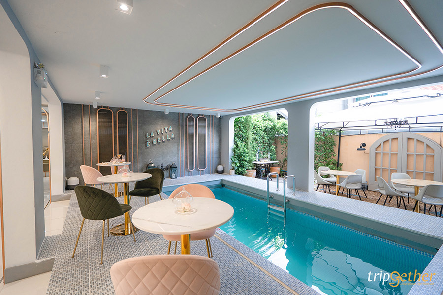 Olive Tree Cafe & Bistro คาเฟ่สวยฟีลลิ่งยุโรปในสไตล์ Modern Arches เน้นโทนสีขาว ชมพูโรสโกลด์ ตั้งอยู่ที่ชั้น 1 ของโรงแรม Nimano Suites ซอยนิมมานเหมินทร์ 5 ภายในร้านมีมุมไฮไลท์อยู่ที่ที่นั่งริมสระว่ายน้ำให้นั่งชิลล์กินขนม ดื่มกาแฟ ถ่ายรูปสวยๆ และยังมีมุมสวนเล็กๆ ให้นั่งชิลล์ หรือจะถ่ายรูปคู่กับต้นโอลีฟอายุเก่าแก่แบบชิคๆ ก็ดีไม่น้อย ส่วนของเมนูที่ Olive Tree Cafe & Bistro มีทั้งอาหารจานเดียวอย่างสปาเก็ตตี้ ข้าวไก่เทอริยากิ เครื่องดื่มชา กาแฟ อิตาเลี่ยนโซดา และเบเกอรี่ให้เลือกสั่งไม่น้อย สำหรับใครมาเที่ยวเชียงใหม่แล้วมองหาคาเฟ่สวยๆ บรรยากาศดี อาหารอร่อยต้องที่นี่เลย