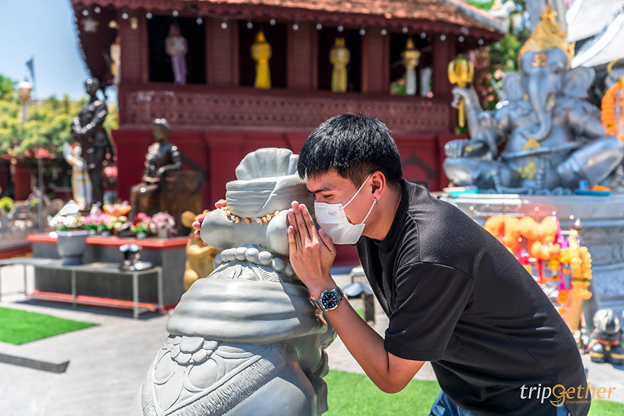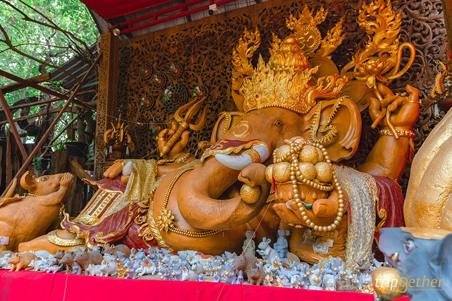 มาต่อกันที่วัดดังในจังหวัดเชียงใหม่ที่ใครๆ ก็ต้องรู้จักนั่นก็คือ วัดป่าแดด วัดที่สายมูตัวจริงต้องหาโอกาสแวะเวียนกันไปไหว้พระ สักการะขอพรกันให้ได้ รวมไปถึงจุดไหว้พระพิฆเนศที่บอกเลยว่าปังมาก เพราะศักดิ์สิทธิ์จนต้องจองคิวกันข้ามเดือนเพื่อทำพิธีอารตีไฟและเจิมหน้าผากโดยจะมีพราหมณ์เป็นผู้ทำพิธีให้ ซึ่งองค์พระพิฆเนศที่วัดป่าแดดเป็นปางอุตรศรีคณปติ ความหมายคือผู้ประทานความสำเร็จในทางที่ถูก ใครที่อยากประสมความสำเร็จไม่ว่าจะการเรียน การงาน ธุรกิจ ก็มากันที่เชียงใหม่ได้เลย