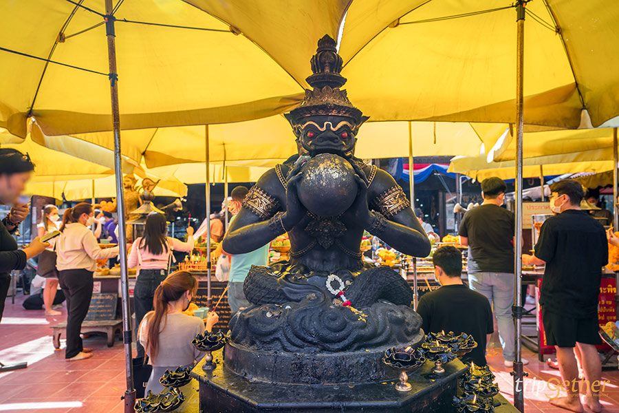 มาต่อกันที่ เทวาลัยพระพิฆเนศ แยกห้วยขวาง ไม่มีใครไม่รู้จักแน่นอนเพราะผู้คนที่ศรัทธาหลั่งไหลไปกราบไหว้ขอพรกันอย่างเนืองแน่นทุกวัน ทั้งกลางวันและกลางคืน ศาลพระพิฆเนศ ตั้งอยู่มุมถนนสี่แยกห้วยขวาง ฝั่งที่จะเลี้ยวไปถนนประชาสงเคราะห์ ถ้าหากเดินทางด้วย MRT ให้ออกที่ทางออก 4 ก็จะเจอเลยสะดวกมาก ใครที่ต้องการขอพรเกี่ยวกับหน้าที่การงาน การเรียน ให้ประสบความสำเร็จต้องมาที่นี่เลย และความพิเศษขององค์พระพิฆเนศห้วยขวาง นั่นก็คือจะเป็นองค์ปางยืนประทานพร ซึ่งเป็นปางประทานพรให้สำเร็จสมดั่งใจหวัง นอกจากนี้ยังมีพระราหู พระตรีมุรติ พระศิวะ และพระแม่อุมาเทวี สามารถไหว้ขอพรได้ในที่เดียวกันเลย รวมไปถึงเครื่องไหว้สักการะก็ยังหาซื้อได้จากที่นี่เลยเพราะเขาได้จัดเตรียมเอาไว้ให้อย่างครบครัน