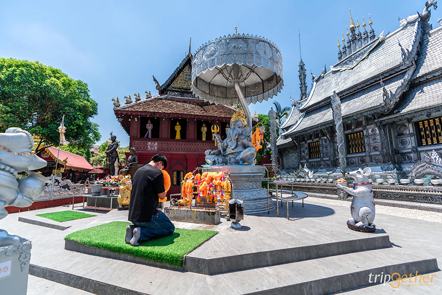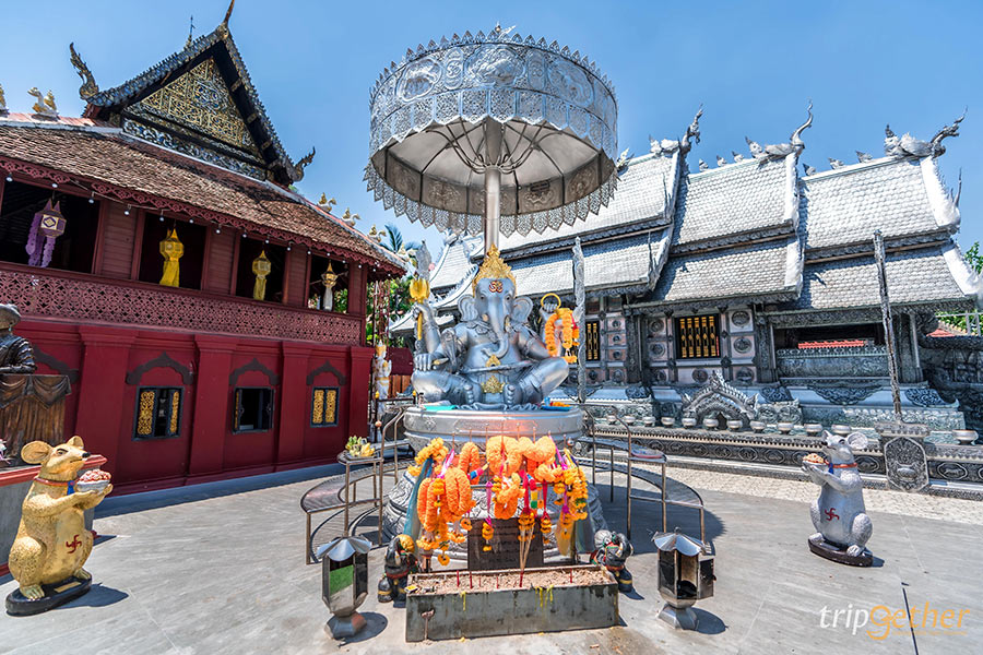 วัดศรีสุพรรณ จุดไหว้พระพิฆเนศย่านถนนวัวลาย จังหวัดเชียงใหม่ วัดสวยที่มีอุโบสถเงินหลังแรกของโลก สามารถเข้าไปไหว้พระขอพรกันได้เลย แต่ที่วัดนี่ผู้หญิงห้ามเข้าไปภายในอุโบสถตามความเชื่อของล้านนา แต่ยังมาสามารถเดินชมรอบๆ อุโบสถได้ รวมไปถึงพระพิฆเนศองค์เงินที่ประดิษฐานอยู่ภายในวัดให้เราไหว้ขอพร ได้ทั้งการงาน สำเร็จ การเรียน ใครที่ไปไหว้องค์พระพิฆเนศแล้วอย่าลืมกระซิบที่หูหนูมุสิกะ เพื่อส่งสารในสิ่งที่เราขอไปยังพระพิฆเนศด้วย รับรองว่าปังสมใจแน่นอน