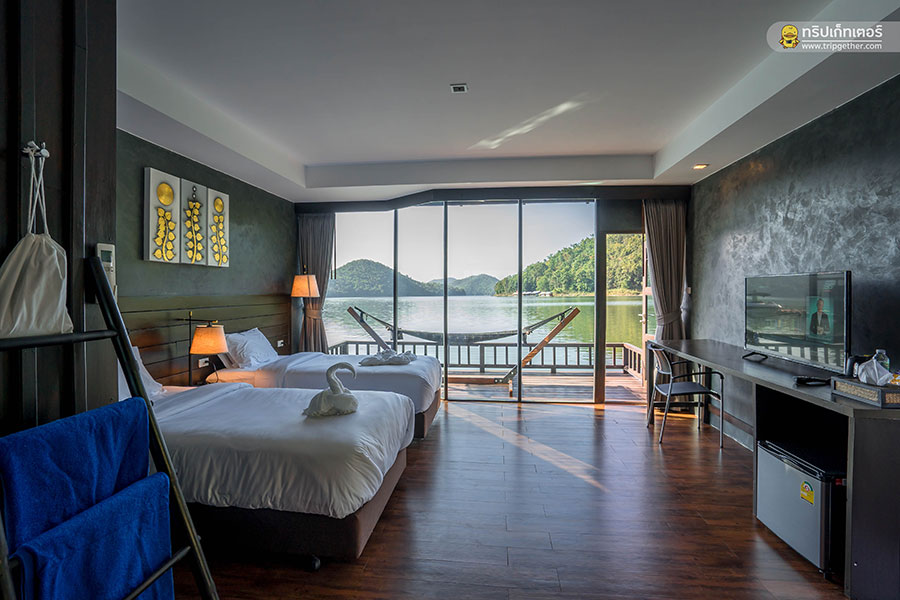 เลค เฮฟเว่น รีสอร์ท (Lake Haven Resort) ที่พักสไตล์มัลดีฟส์เมืองไทยที่คุณจะได้สัมผัสกับทะเลสาบขนาดใหญ่ของเขื่อนศรีนครินทร์ที่รายล้อมไปด้วยธรรมชาติ ภายในห้องพักตกแต่งเรียบง่ายสไตล์โมเดิร์น เน้นงานไม้เป็นหลักให้ความรู้สึกผ่อนคลาย เพียบพร้อมไปด้วยสิ่งอำนวยความสะดวกครับครัน บริเวณหน้าห้องมีเก้าอี้ให้นอนเอนกายชมวิวสวยๆ ของเขื่อนได้ตั้งแต่เช้าจรดเย็น สำหรับกิจกรรมมาพร้อมเครื่องเล่นทางน้ำแบบจัดเต็มสำหรับใครที่มายกแก๊งค์ต้องถูกใจกับเครื่องเล่นอย่างแน่นอน ในส่วนของสถานที่ท่องเที่ยวใกล้ๆ มีทั้งน้ำตกเอราวัณ จุดชมวิวสันเขื่อนศรีนครินทร์ และอีกหลากหลายสถานที่น่าแวะเที่ยวสุดๆ