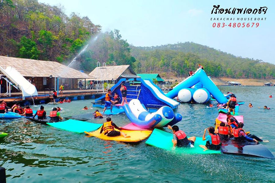 ที่พักสไตล์บ้านไม้ลอยน้ำสุดชิลล์ ที่มาพร้อมเครื่องเล่นทางน้ำแบบจัดเต็มไม่แพ้กัน เหมาะสำหรับหนีไปพักผ่อนแบบยกแก๊งค์สัมผัสสายน้ำสุดผ่อนคลายทั้งยังดื่มด่ำกับความสวยงามของธรรมชาติอีกด้วย ในส่วนของห้องพักมาพร้อมความเงียบสงบแบบเป็นกันเอง ให้คุณได้ตื่นเช้ามาเจอกับหมอกสวยยามเช้า และสายน้ำไหลเย็นแบบไม่เหมือนใคร สำหรับคนชอบถ่ายรูปก็มีมุมดีๆ ให้แวะถ่ายเพียบ นอกจากนี้ยังมีกิจกรรมให้ทำหลากหลายทั้งพายเรือคายัค สไลเดอร์ แพยาง เครื่องเสียง และอีกหลากหลายที่ตอบสนองความต้องการได้เป็นอย่างดี สำหรับใครที่อยากพักผ่อนสบายๆ ก็แวะมาเที่ยวได้ที่ เรือนแพเอกชัย (Eakachai Houseboat)