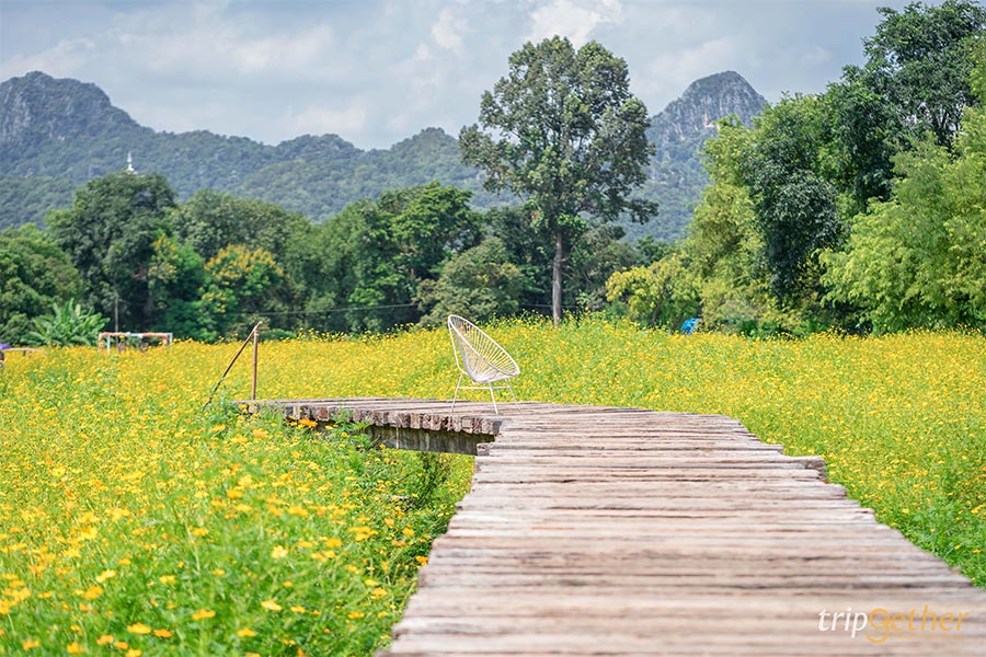 กระเพรา & coffee คาเฟ่ท่ามกลางทุ่งดาวกระจายและดอกคอสมอสสุดอลังการ บรรยากาศตรงนี้เหมือนหลุดเข้าไปอยู่ในโลกของเทพนิยายเลย แถมมุมถ่ายรูปก็มีเยอะมาก ไม่ว่าจะเป็นบ้านไม้เล็กๆ กลางสวน สะพานกลางทุ่ง ซุ้มและชุดเก้าอี้สีขาว แค่ยกกล้องขึ้นมาก็กดชัตเตอร์ได้เลย นอกจากมาถ่ายรูปสวยๆ แล้วยังมีร้านคาเฟ่ให้อิ่มอร่อยกันด้วย โดยทางร้านมีเสิร์ฟทั้งอาหารจานเดียว เครื่องดื่ม และของหวานมากมาย บอกเลยว่าใครมาลพบุรีต้องห้ามพลาดมาเช็คอินที่ร้านกระเพราเด็ดขาด