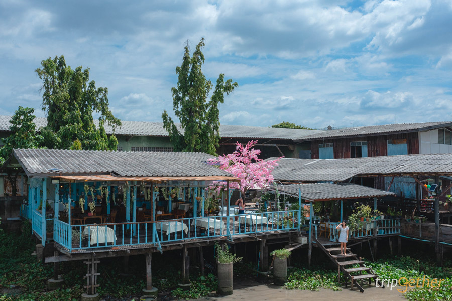 Captain Hook Riverfront Restaurant ร้านบรรยากาศดีๆ ริมแม่น้ำเจ้าพระยาที่เป็นทั้งร้านอาหารและคาเฟ่ พิกัดร้านตั้งอยู่ตรงเชิงสะพานนวลฉวี สามารถเดินทางมาได้ง่ายมากๆ ตัวร้านเป็นบ้านไม้ที่ถูกรีโนเวทมาจากโกดังริมน้ำ ทาด้วยสีฟ้าสดใสและขอตกแต่งต่างๆ ที่ดูแล้วเรากับธีมกัปตันฮุคมาก และสำหรับสายโซเชียลอย่าลืมมาเช็คอินกับต้นซากุระสีชมพูที่ตั้งโด่ดเด่นอยู่กลางร้าน บอกเลยว่าถ่ายรูปมาดูดีสุดๆ โซนที่นั่งในร้านเป็นแบบโอเพ่นแอร์ที่มีให้เลือกทั้งอินดอร์ในบ้านและเอาท์ดอร์ริมน้ำ ถ้าอยากนั่งชิลล์ๆ รับลมสบายๆ และมองวิวแม่น้ำก็แนะนำที่นั่งริมน้ำเลย ส่วนเมนูที่ร้านเสิร์ฟก็มีหลากหลาย ไม่ว่าจะเป็นอาหารทะเล อาหารไทย และเมนูนานาชาติ ใครอยากมาสัมผัสบรรยากาศสบายๆ ริมแม่น้ำต้องมาที่นี่เลย