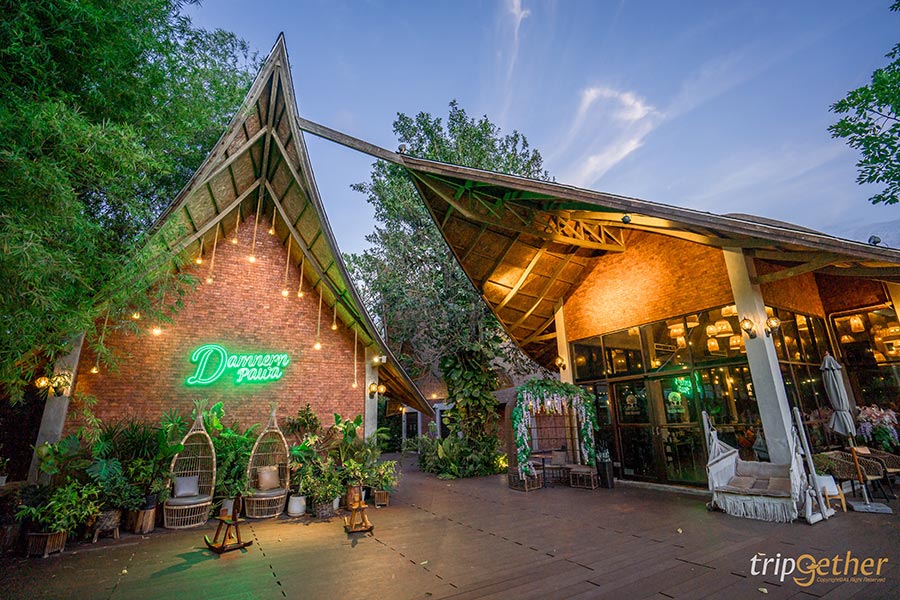 ดำเนินพวา ร้านอาหารอัมพวาบรรยากาศดีริมน้ำ มีการการออกแบบโดยใช้วัสดุจากธรรมชาติและมีความร่มรื่นจากต้นไม้ใหญ่ ทำให้เป็นร้านที่เหมาะกับการพาครอบครัวหรือเพื่อนมาจัดเป็นมื้อพิเศษ ที่นั่งในร้านแบ่งเป็น 2 ส่วนหลักๆ ก็คือ อินดอร์มาพร้อมหน้าต่างใสรอบร้าน ทำให้คนที่นั่งในร้านยังคงเห็นวิวข้างนอกได้อย่างชัดเจน และเอาท์ดอร์ริมแม่น้ำ ตรงนี้ชิลล์มากๆ ยิ่งช่วงเย็นมีดนตรีสด เรียกได้ว่าเป็นการกินข้าว รับลม เคล้าเสียงเพลงจริงๆ ส่วนอาหารทางร้านเน้นเสิร์ฟอาหารไทยโบราณ คัดสรรวัตถุดิบชั้นดีและเลือกใช้ผักที่ปลูกเอง ใครอยากรู้ว่าผัดสดขนาดไหนต้องลอง น้ำพริกปลาทูโบราณ ผัดสดๆ กับน้ำพริกแซ่บๆ เป็นของเข้ากันมาก นอกจากนี้ยังมีเป็ดร่อน เสิร์ฟมาทั้งตัวใส่จานใหญ่ พร้อมเครื่องเคียงจัดเต็ม และหมูลอยแพ ดำเนินพวา รสกลมกล่อม กินกับข้าวสวยคือดีมาก วันหยุดนี้ใครมองหาร้านอาหาร คาเฟ่อัมพวา สมุทรสงครามต้องแวะมากินมื้อเย็นที่นี่แล้ว