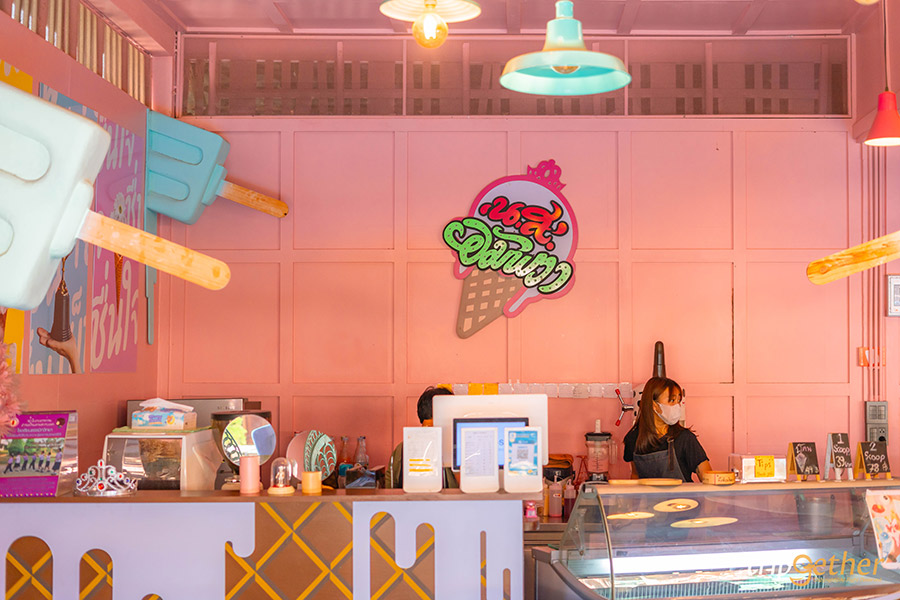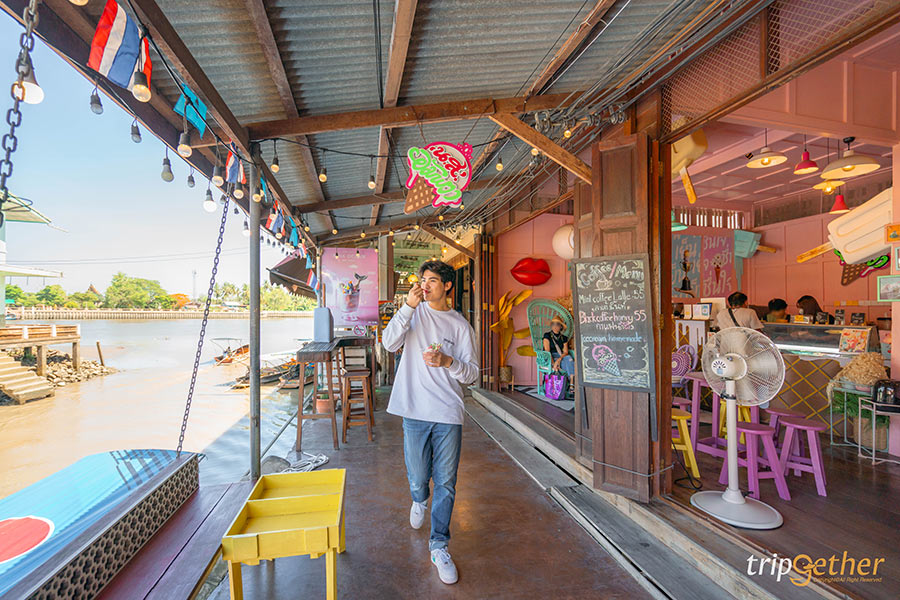 มาเติมความสดชื่นด้วยร้าน น.ส.อัมพวา เป็นร้านไอศกรีมที่อยู่ในตลาดน้ำอัมพวา เชื่อว่าใครที่เดินผ่านร้านจะต้องหยุดหันมามองสีสันอันสดใส ทั้วทั้งร้านทาด้วยสีชมพูเป็นพื้นและประกอบด้วยสีอื่นๆ ที่รวมกันแล้วดูเข้ากับบรรยากาศของตลาดน้ำอัมพวามาก ใครที่ชอบถ่ายรูป สามารถถ่ายได้ทุกมุมเลย น่ารักสดใสสุดๆ ส่วนเมนูทางร้านเป็นของหวาน อย่างไอศกรีมโฮมเมด น้ำปั่นสมูทตี้ กาแฟ ชา บิงซู ใครเดินตลาดอัมพวาร้อนๆ แนะนำให้มาร้านนี้เลย ถือว่ามานั่งพักผ่อน เติมความสดชื่นและเพิ่มน้ำตาลให้ร่างกายกันรัวๆ ที่ร้าน น.ส.อัมพวา ร้านคาเฟ่อัมพวา สมุทรสงคราม