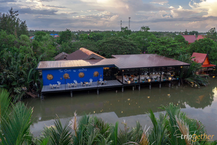The Canal by asita ร้านอาหารอัมพวาริมคลอง มาพร้อมกับความเงียบสงบและเป็นส่วนตัว ตอบโจทย์คนที่อยากได้ร้านนั่งชิลล์ๆ กินอาหารอร่อยๆ โซนนั่งในร้านเน้นเปิดโล่ง สามารถรับลมได้จากทุกทิศทาง หรืออยากนั่งตากแอร์เย็นๆ ก็มีโซนเป็นอินดอร์ ส่วนเมนูทางร้านเน้นเสิร์ฟอาหารไทยและยุโรป รวมถึงเมนูซีฟู้ดที่สด ใหม่ ส่งตรงความอร่อยจากเชฟมากประสบการณ์จากโรงแรม 5 ดาว เมนูที่ห้ามพลาด คือ กุ้งแม่น้ำธรรมชาติเผาหินลาวา ห่อหมกปลากะพง แกงรัญจวนซี่โครงอ่อนตุ๋น หมึกพริกเกลือ กะพงนึ่งซีอิ๊วสไตล์ฮ่องกง ยำส้มโอกุ้งแม่น้ำ และน้ำพริกกระจาดที่มาทั้งน้ำพริกปลาทูย่าง น้ำพริกกะปิ และหลน พร้อมเครื่องเคียงเต็มกระจาด นอกจากนี้ยังมีกว่า 200 เมนูให้เลือกอร่อย The Canal by asita เป็นอีกหนึ่งร้านอาหารอัมพวาริมน้ำ สมุทรสงครามที่เหมาะกับการเป็นมื้อพิเศษสุดๆ