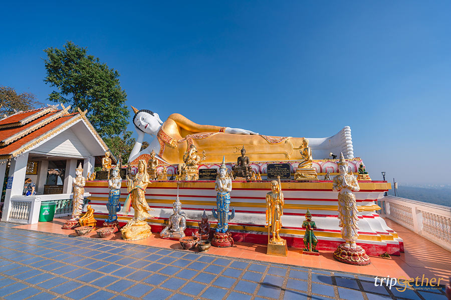 ขับรถขึ้นเขามาอีกนิดที่ วัดพระธาตุดอยคำ เพื่อมาขอพรและบนบานกับหลวงพ่อทันใจ เชื่อกันว่าใครที่มากราบขอพรที่นี่มักจะได้สมหวังดังใจ ส่วนเรื่องที่คนส่วนใหญ่มาขอกันก็เรื่องโชคลาภและหน้าที่การงาน และเมื่อได้ตามที่ปรารถนาก็จะนำพวงมาลัยดอกมะลิมาถวยท่าน ดังนั้นจะเห็นได้ว่าบริเวณหน้าหลวงพ่อทันใจมีพวงมาลัยจำนวนมาก แสดงให้เห็นถึงความศักดิ์สิทธิ์จริงๆ นอกจากหลวงพ่อทันใจยังมีองค์พระอื่นๆ ให้ได้กราบไหว้อีกมากมาย รวมถึงไฮไลท์จุดชมวิวพระธาตุดอยคำที่ใครมาก็ต้องยืนรับลมชมวิวทิวทัศน์และถ่ายรูปเช็คอินกัน