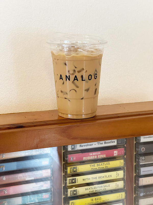 Analog Cafe มาพร้อมกับบรรยากาศอันแสนจะอบอุ่น เริ่มตั้งแต่การตกแต่งที่เน้นใช้โทนสีสบายตาอย่างสีขาวและสีน้ำตาลจากไม้ รวมถึงการตกแต่งและเฟอร์นิเจอร์ที่ให้ฟีลเหมือนมาเที่ยวบ้านเพื่อน ภายในติดโปสเตอร์และมีแแผ่นเสียงประดับตามผนัง บอกเลยว่ามู้ดดีมากและถ่ายรูปสวยสุดๆ สำหรับโซนที่นั่งส่วนใหญ่จะอยู่ในร้านที่เป็นห้องแอร์ ซึ่งมีที่นั่งให้เลือกเยอะ ส่วนเมนูที่ร้านจะเน้นเป็นเมนูโฮมเมด มีทั้งเค้ก ครัวซองค์ และเบเกอรี แต่ละอย่างน่าตาน่ากินมาก นอกจากนี้ยังมีเครื่องดื่ม coffee และ non-coffee อีกมากมาย
