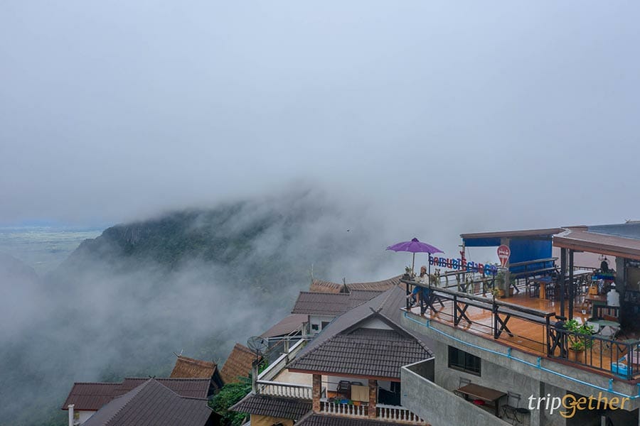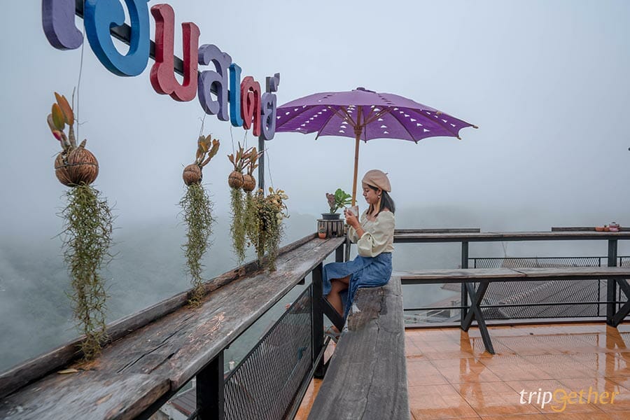 ดอยผาฮี้โฮมสเตย์ร่มม่วง ที่พักผาฮี้ชื่อดังที่หลายๆ คนรู้จัก ยิ่งช่วงวันหยุดบอกเลยว่าต้องจองล่วงหน้าก่อนเข้ามาพัก แต่ถ้าใครไม่ได้พักที่นี่ก็สามารถแวะเช็คอินชิมเครื่องดื่มถ่ายรูปกันได้ที่คาเฟ่ชั้นดาดฟ้าของทางโฮมสเตย์ มีบริการทั้งอาหารและเครื่องดื่ม สามารถชมวิวได้แบบ 180 องศา มองเห็นวิวดอยนางนอนของจังหวัดเชียงรายแบบกว้างไกล เป็นอีกหนึ่งจุดชมวิวที่สวยที่สุดของผาฮี้เลยก็ว่าได้