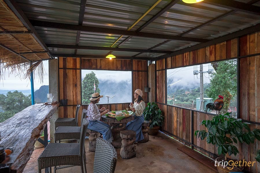 ผาฮี้วัลเล่ย์ ที่พักผาฮี้สุดเก๋ที่มีโซนร้านอาหารและคาเฟ่เปิดให้บริการอยู่ด้านบนของที่พัก ใครไม่ได้พักที่นี่ก็สามารถเข้ามาใช้บริการได้นะ มีทั้งเมนูของว่างทานเล่น เครื่องดื่มต่างๆ กาแฟดริป อาหารพื้นเมือง และอาหารยุโรปดั้งเดิมหลากหลาย เมนูห้ามพลาดเลยก็คือพิซซ่าเตาถ่านโฮมเมด ซี่โครงหมูอบน้ำผึ้ง รสชาติแต่ละเมนูบอกเลยว่าเด็ดไม่แพ้กาแฟ ทุกเมนูจะเสิร์ฟมาแบบร้อนๆ หอมฉุยมาแต่ไกล