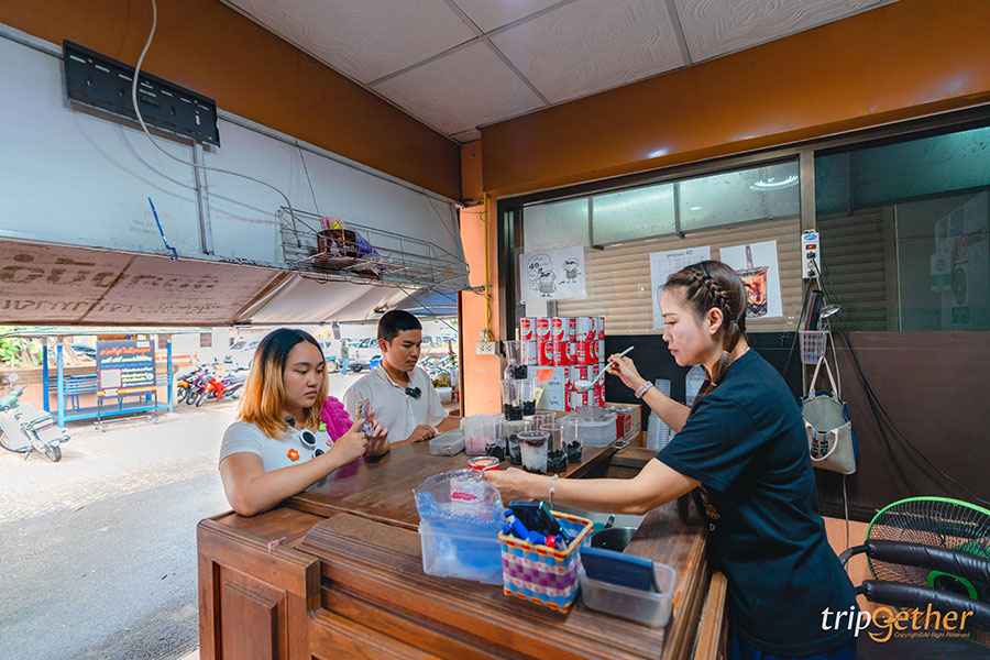 อากาศร้อนๆ ก็เติมน้ำตาลในเลือดกันที่ เฉาก๊วยมุกดา ตั้งอยู่ในวัดพระธาตุหริภุญชัย บอกเลยว่าร้านนี้เคลมแรงมากว่าอร่อยสุดในเมืองมนุษย์ ใครเดินผ่านก็อดใจไม่ไหว ต้องแวะซื้อสักแก้ว มาแล้วต้องสั่งเมนูออริจินอลอย่าง เฉาก๊วยนมสด ดูดไปคำแรกได้รสหวานมันของนม มีกลิ่นน้ำตาลทรายแดงหอมอ่อนๆ จบด้วยตักเนื้อเฉาก๊วยหนึบๆ ขึ้นมากิน เรียกได้ว่าเป็นเมนูที่ไม่ว่าจะกินเมื่อไรก็สดชื่น ช่วยคลายร้อนมากๆ