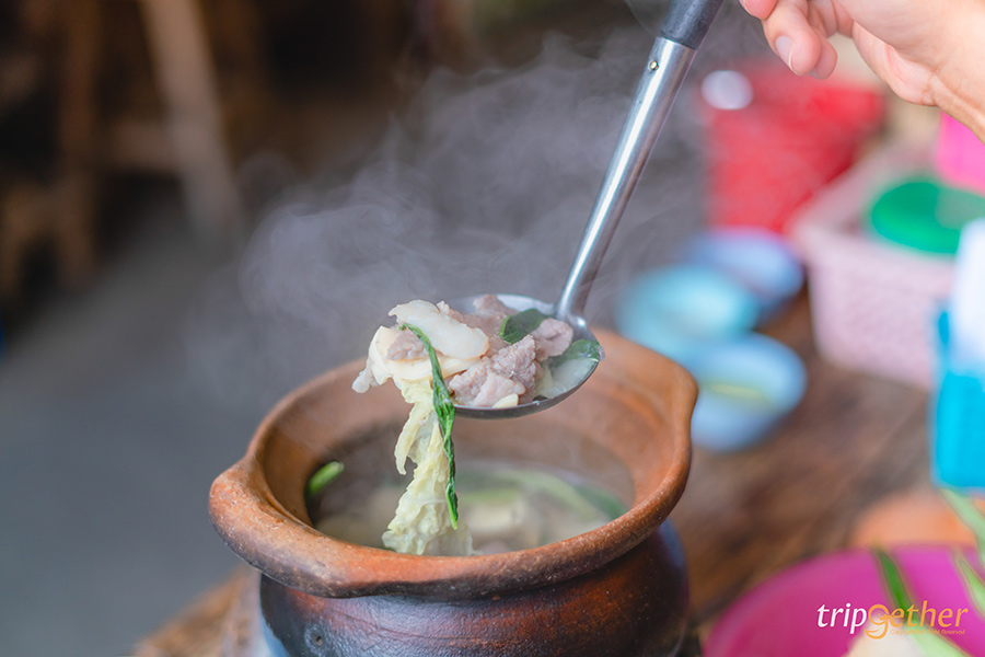 มาอิ่มจุกๆ ในราคาหลักสิบที่ร้าน หมูจุ่มป๋าทัศน์ ตำนานหมูจุ่มกว่า 10 ปีที่เป็นขวัญใจของวัยรุ่นชาวลำพูน นอกจากราคาเริ่มต้นชุดละ 35 บาทที่ถูกแสนถูก รสชาติและคุณภาพก็คุ้มเกินราคามาก สำหรับที่ร้านมีขายชุดหมูจุ่มและชุดปลาจุ่ม ในหนึ่งเซ็ตจะได้หมูหรือปลา 1 จาน ผัดสด วุ่นเส้น และไข่ไก่ มาพร้อมน้ำซุปในหม้อดินหอมๆ ถ้าอยากสั่งเมนูอื่นๆ อย่างเต้าหู้ไข่ ปูอัด เห็ดเข็มทอง ก็สามารถสั่งเพิ่มได้ และมาแล้วห้ามพลาดน้ำจิ้มรสเด็ด ซึ่งทางร้านมีน้ำจิ้ม 2 แบบก็คือ น้ำจิ้มสุกี้และน้ำจิ้มซีฟู้ด แอบกระซิบว่าถ้านำมาผสมกันจะยิ่งอร่อยนัวสุดๆ เห็นว่าเด็ดขนาดนี้ใครไปเที่ยวลำพูนอย่างลืมแวะไปด้วยนะ