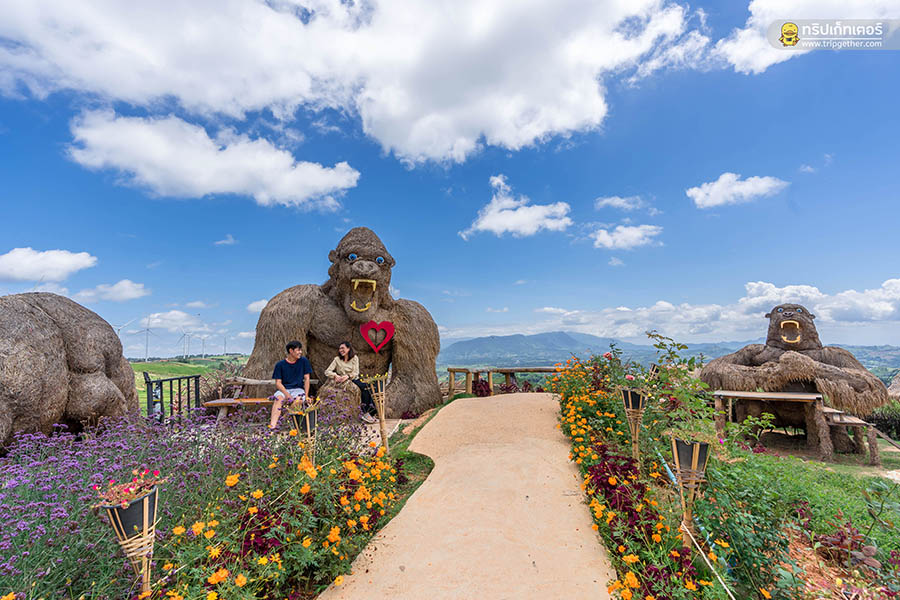 มาเที่ยวทุ่งกังหันลมแล้วต้องแวะมาถ่ายรูปตรงจุดชมวิว คิงคอง เขาค้อ สถานที่ที่เป็นทั้งคาเฟ่ ลานกางเต็นท์ และจุดชมวิว ที่นี่เค้ามีมุมถ่ายรูปสวยๆ มากมาย ทั้งคิงคองยักษ์ ไดโนเสาร์ ช้างแมมมอส สวนดอกไม้สวยๆ แล้วยังเสริมทัพมาด้วยเหล่าฮีโร่อเวนเจอร์ มีสะพานไม้ไผ่ และชิงช้าให้เล่นด้วย วิวที่นี่ก็สวยไม่แพ้ที่อื่นๆ เลย สามารถมองเห็นวิวได้แบบ 360 องศา มองไปทางขวาก็จะเห็นวิวทุ่งกังหันลมเขาค้อสวยงามมาก สำหรับใครที่จะมาเที่ยวเดินเล่น ชมวิวธรรมชาติ หรือมาถ่ายรูปต้องเตรียมเงินค่าเข้าด้วยนะจ๊ะ คนละ 40 บาทเท่านั้น สวย คุ้มราคาแน่นอน