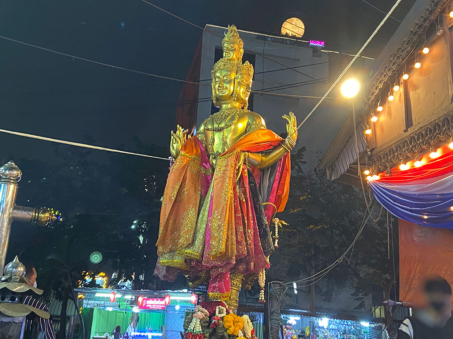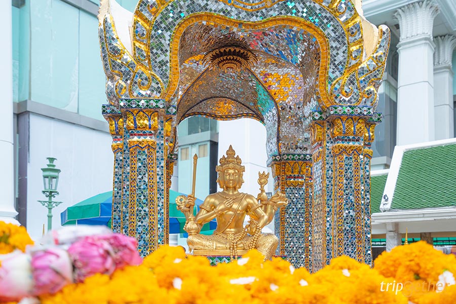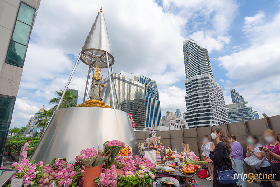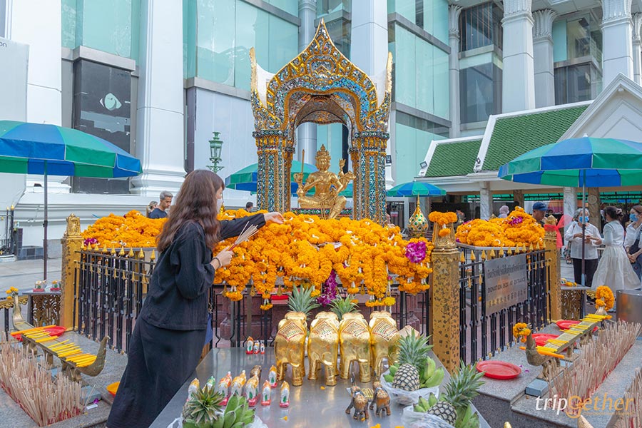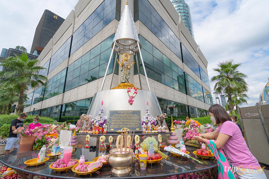 พระพรหมเอราวัณ หรือศาลท้าวมหาพรหม เทพเจ้าในศาสนาพราหมณ์ฮินดูที่เชื่อกันว่าเป็นผู้สร้างโลก ลิขิตชะตามนุษย์ ตั้งอยู่ด้านข้างโรงแรมแกรนด์ไฮแอทเอราวัณ กรุงเทพฯ หรือที่หลายคนรู้จักกันดีว่าแยกราชประสงค์ ที่นี่เป็นจุดสักการะขอพรที่โด่งดังอย่างมากทั้งจากคนไทยและชาวต่างชาติโดยเฉพาะชาวจีน ที่นิยมมาไหว้ขอพรในเรื่องต่างๆ ไม่ว่าจะเป็นเรื่องของการขจัดอุปสรรคต่างๆ ในการใช้ชีวิตหรือการทำงาน ทำธุรกิจ ช่วยเสริมโชคลาภและความสำเร็จ บอกเลยว่าที่นี่ขึ้นชื่อว่าเป็นจุดไหว้ขอพรแล้วเป็นจริงซึ่งเห็นได้จากที่มีคณะนางรำประจำที่คอยรับแก้บนอยู่บริเวณศาลนั่นเอง