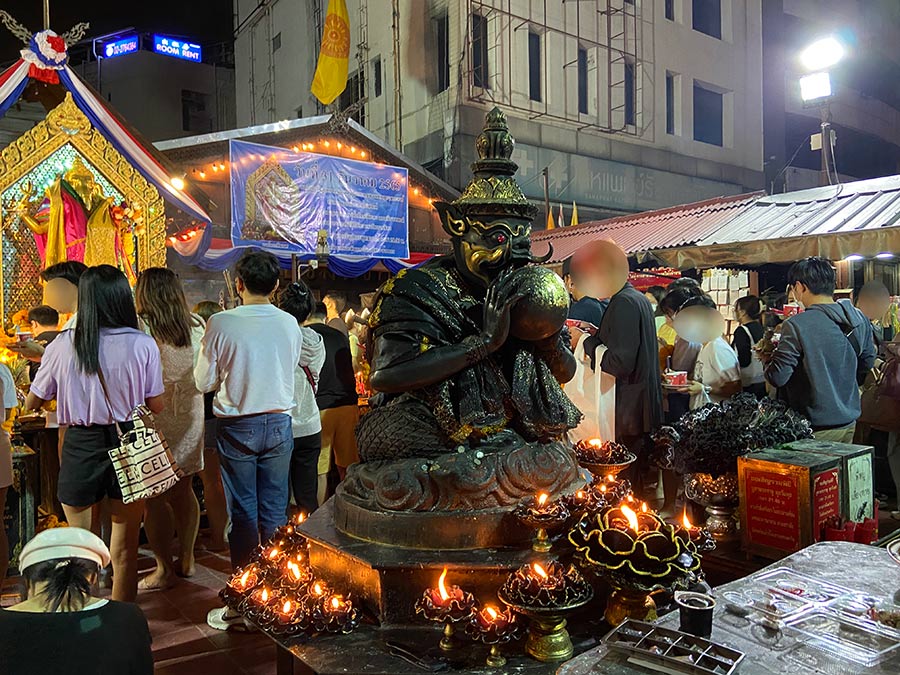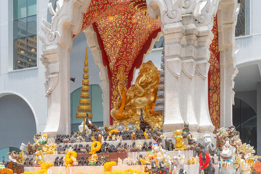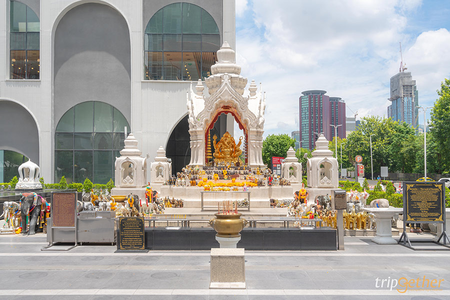 พระพิฆเนศ หน้าศูนย์การค้าเซ็นทรัลเวิลด์ ที่ขึ้นชื่อในเรื่องการประทานพรทั้งการงาน การเรียน ความสำเร็จ และสามารถขจัดอุปสรรคให้หมดสิ้นไปได้ ซึ่งเชื่อกันว่าเมื่อจะประกอบพิธีการใดๆ ไม่ว่าจะไหว้ครู พิธีบวงสรวง หรือแม้แต่การเริ่มต้นธุรกิจการงานต่างๆ นั้น การได้สักการะพระพิฆเนศเป็นอันดับแรกจะเป็นสิริมงคลและช่วยให้การทำสิ่งต่างๆ ราบรื่น ไปได้ด้วยดี ที่หน้าศูนย์การค้าเซ็นทรัลเวิลด์เป็นอีกจุดไหว้ที่ผู้คนแวะเวียนกันมาสักการะขอพรพระพิฆเนศกันอย่างต่อเนื่องในทุกๆ วัน