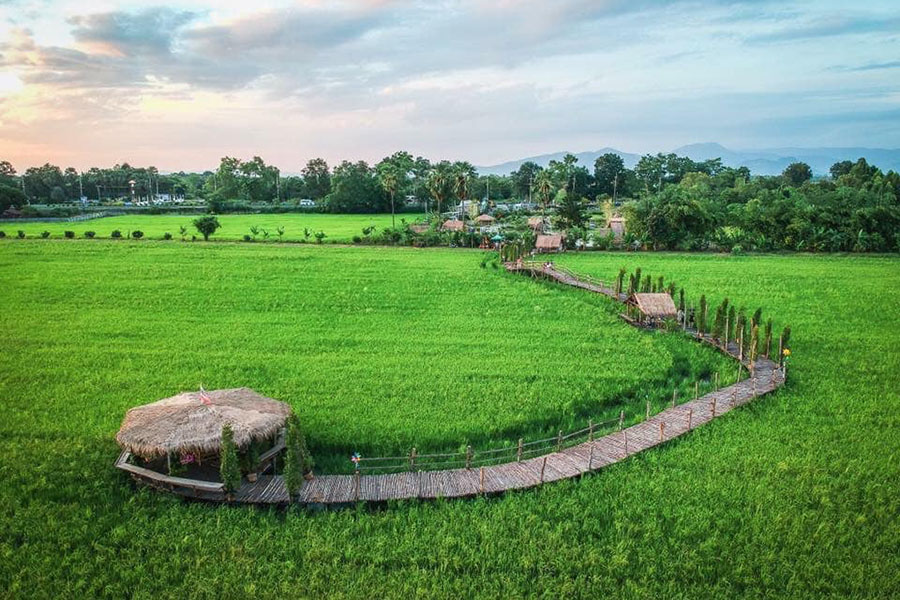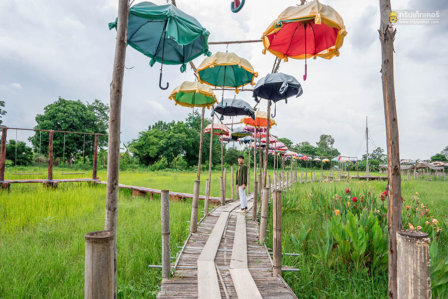 สะพานทุ่งนามุ้ย สถานที่ท่องเที่ยวเชิงวิถีชุมชน ยอดฮิตของนครนายก ไฮไลท์ก็คือสะพานไม้ที่ทอดยาวไปกลางทุ่งนาที่เขียวขจี เป็นมุมถ่ายรูปที่เมื่อใครได้แวะเวียนไปเป็นต้องแชะ ภายในบริเวณยังมีคาเฟ่เล็กๆ ให้บริการเครื่องดื่ม และนั่งชิลล์ๆ รับลมริมทุ่งนา สูดบรรยากาศกรีนๆ อีกทั้งยังมีสินค้าทางการเกษตรและของฝากให้ได้ช้อปอีกมากมาย