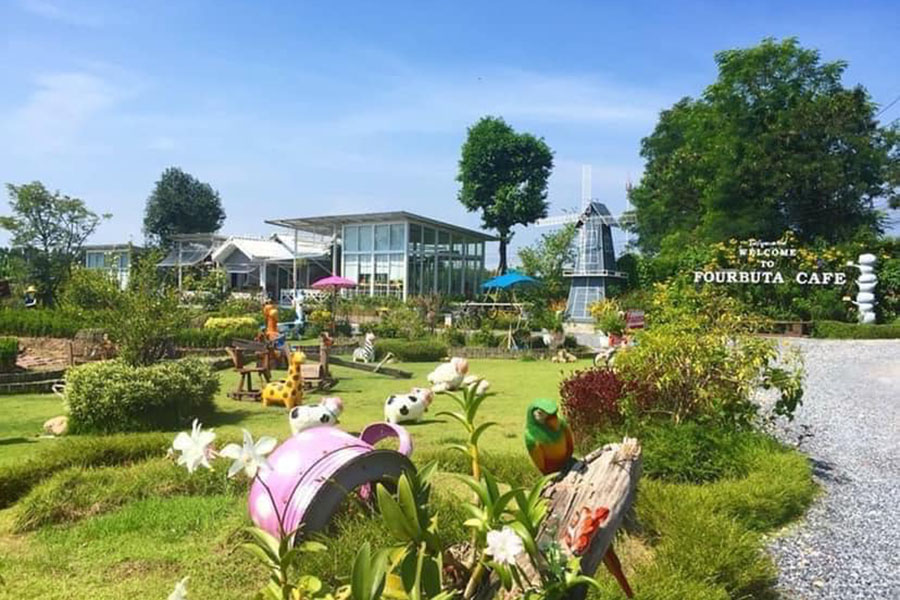 Fourbuta Cafe’ อีกหนึ่งคาเฟ่กลางทุ่งนา นครนายก บรรยากาศกรีนๆ ไม่แพ้ที่ไหนๆ ตัวคาเฟ่เป็นสไตล์เรือนกระจกสีขาว ให้ความรู้สึกโปร่งโล่งสบาย เห็นวิวทิวทัศน์ด้านนอกได้อย่างกว้างขวาง ซึ่งนอกจากบรรยากาศจะดีเหมาะแก่การมานั่งพักผ่อนชิลล์ๆ แล้ว ที่นี่ยังมีกิจกรรมให้เล่นคลายความเบื่ออีกด้วย เช่น เดินเล่นชมสวน เดินเล่นกลางทุ่งนา หรือจะปั่นเรือกลางน้ำ ก็ชิลล์ไม่แพ้กัน ในส่วนของอาหารที่นี่มีทั้งเครื่องดื่มและอาหารนานาชาติ ให้ได้ลิ้มลองท่ามกลางธรรมชาติแบบนี้