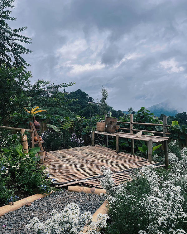 จุดเช็คอินแห่งใหม่ สวนดอกผาฮี้ฟาร์มสเตย์ อยู่ติดกับสะพานไม้ไผ่ไร่ผาฮี้ ที่นี่นอกจากจะเป็นที่พัก ยังเป็นจุดถ่ายรูปที่น่ารักมากๆ ข้างในปลูกดอกไม้ไว้หลายชนิด มีเซ็ตมุมให้เช็คอินมากมาย และถ้ามาในช่วงหน้าฝนหรือหน้าหนาว ได้ภาพคู่กับหมอกขาวๆ อากาศเย็นสบาย บอกเลยว่าได้รูปสวยๆ กลับไปเพียบ ในส่วนของที่พักอยู่บนเนิน ทุกห้องหันหน้าเข้าหาวิวธรรมชาติ เห็นความกรีนและทะเลหมอกแบบเต็มๆ ในห้องตกแต่งเรียบง่าย สไตล์บ้านๆ เป็นไม้ไผ่สาน บรรยากาศอบอุ่น น่านอน ไฮไลท์คือระเบียงห้อยขาที่สามารถมานั่งชิลล์รับลมฟินๆ