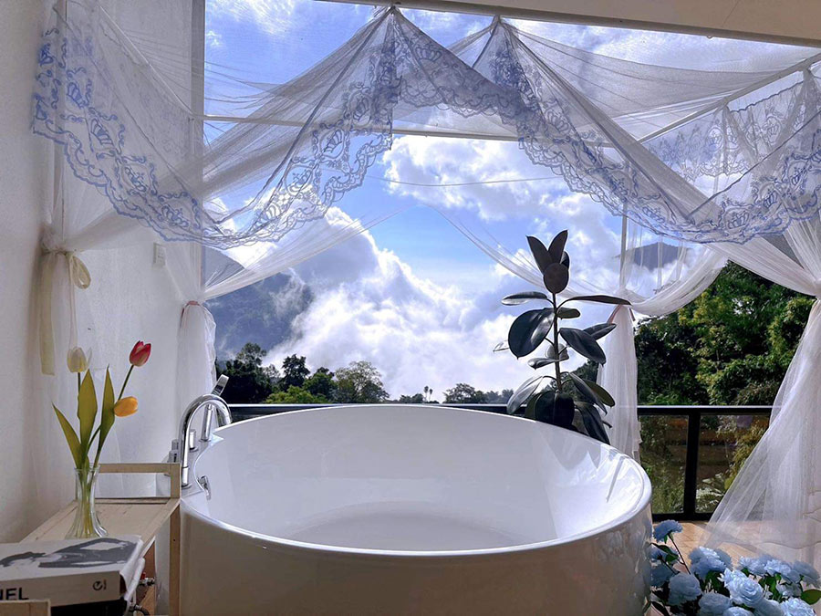 ผาฮี้ฟาร์มสเตย์ 1 ที่พักผาฮี้ฟีลดีท่ามกลางสายหมอก เห็นวิวเขา 180 องศา ห้องพักดีไซน์สวย ตกแต่งแบบมินิมอล ไฮไลท์ก็คือระเบียงส่วนตัวพร้อมอ่างอาบน้ำเอาท์ดอร์ นอนแช่อ่างชมวิวภูเขาแบบฟินๆ ส่วนสายคอนเทนต์ถ่ายรูปกันได้รัวๆ และที่ห้ามพลาดขึ้นมาชั้นดาดฟ้า นั่งเสพความกรีนและรับไอเย็นแบบฉ่ำๆ บอกเลยว่ามุมนี้ชิลล์มาก เหมาะกับการมาดริปกาแฟ นอกจากนี้ที่พักยังมีมุมถ่ายรูปสวยๆ อีกเพียบ ถ้าได้มานอนสักคืนรับรองว่าจะติดใจ คุ้มทั้งบรรยากาศและราคาเริ่มต้นเพียงหลักร้อย แต่ได้วิวหลักล้าน แถมรวมอาหารเช้าเย็นด้วย