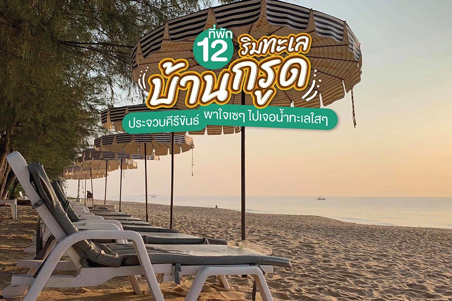 ที่พักริมทะเลในจังหวัดประจวบคีรีขันธ์ ที่สงบและบรรยากาศดี ใครนึกถึงหาดบ้านกรูดบ้าง? ไปสูดอากาศบริสุทธิ์ ดื่มด่ำธรรมชาติ ฟังเสียงคลื่น รับลมทะเล ที่บ้านกรูดกันเถอะ? ขอแนะนำ 12 ที่พักริมทะเลบ้านกรูด ประจวบคีรีขันธ์ พาใจเซๆ ไปเจอน้ำทะเลใสๆ ที่พักริมทะเลหรือบางที่มีเพียงถนนกั้นก็ก้าวถึงหาดทราย ให้คุณได้เดินเล่น เดินชิลล์บนชายหาด มองทะเลที่เป็นประกายวิบวับ เพื่อเติมพลังจากวันที่แสนอ่อนล้า รับรองว่าหาดบ้านกรูดจะเยียวยาใจของคุณให้เต็มร้อยเปอร์เซ็นต์อย่างแน่นอน