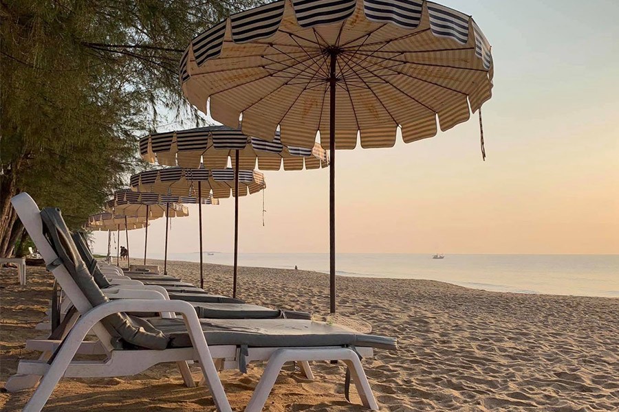 บ้านมนตรา บีช รีสอร์ท ที่พักติดทะเลสไตล์สไตล์โมร็อคโค ผสมผสานเมดิเตอร์เรเนียน ไม่มีถนนกั้นสามารถเดินลงหาดทราย ชมวิวทะเลและชมคลื่นที่ซัดเข้ามาบนชายหาด กับบรรยากาศเงียบสงบและส่วนตัวมากๆ รีสอร์ทมีห้องพัก 4 แบบให้ได้เลือกไม่ว่าจะเป็น Beach Front Villa, Ocean View Villa, Studio Poolside Villa และ Family Poolside Room ให้ได้เลือกกัน และยังมีสระว่ายน้ำระบบน้ำแร่ธรรมชาติเพื่อให้ผู้เข้าพักได้เพลิดเพลิน ผ่อนคลายกับสระว่ายน้ำในวันพักผ่อนริมทะเล มีห้องอาหาร Montalay restaurant ริมทะเลเปิดบริการอาหารสุดพิเศษในแต่ละมื้อ ที่ห้ามพลาดคือสามารถขึ้นไปรับลม ชมวิวทะเลบนดาดฟ้าของห้องอาหารได้ด้วย