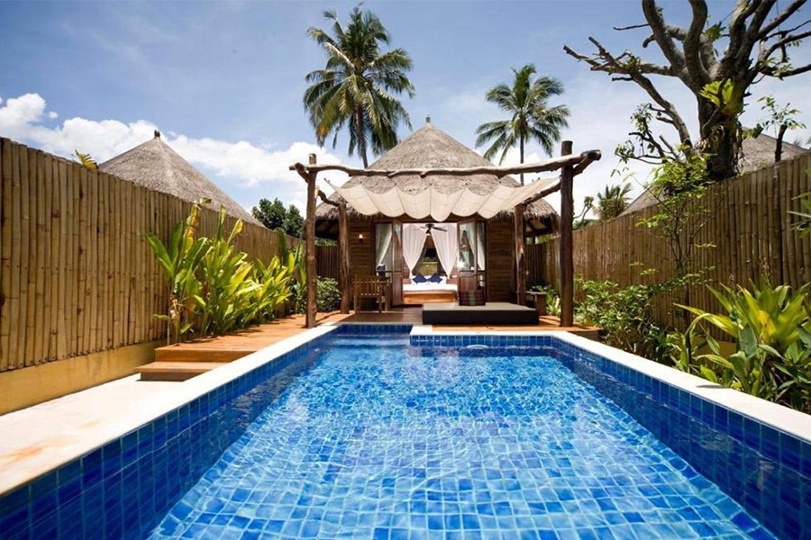 Resto Sea Resort – Ban Krut ที่พักติดทะเลสไตล์บาหลีพร้อมพูลวิลล่า พร้อมชายหาดส่วนตัวไม่มีถนนกั้น เหมาะกับคนที่กำลังมองหาที่พักสวยๆ ในบรรยากาศเงียบสงบ เพราะเป็นแบบวิลล่าส่วนตัวมากๆ มีให้เลือกทั้งแบบ Grand Deluxe Pool Villa – Beach Front แบบ Grand Deluxe Pool Villa แบบ Deluxe Pool Villa และแบบ Deluxe Jacuzzi Villa ให้ได้เลือกกันตามใจชอบ ขอบอกว่าใครเป็นชอบถ่ายรูปจะต้องถูกใจเพราะมุมต่างๆ ของรีสอร์ทสวยน่าถ่ายรูปทุกมุม