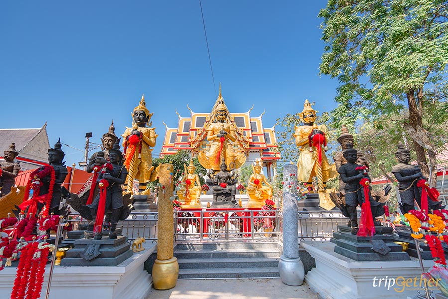 มาถึงสมุทรสงครามก็ต้องไปไหว้ขอพรกับท้าวเวสสุวรรณที่ วัดจุฬามณี เป็นวัดดังที่ขึ้นชื่อเรื่องความปัง ขอโชคลาภ การค้าขาย ความสำเร็จ เรียกได้ว่าสามารถขอได้หมด สำหรับจุดไหว้ท้าวเวสสุวรรณจะมี 2 จุดหลักๆ คือ จุดไหว้หน้าอุโบสถซึ่งเป็นจุดที่ถูกบูรณะใหม่ พื้นที่กว้างขวางและรองรับคนได้จำนวนมาก ต่อมาเป็นจุดหน้าศาลา บริเวณนี้จะมีท้าวเวสสุวรรณให้ได้กราบไหว้ถึง 4 ปาง ใครที่มาก็สามารถเลือกได้ว่าจะไปไหว้สักการะที่จุดไหน บอกเลยว่าปังหมด และการกราบไหว้ท้าวเวสสุวรรณก็ต้องเตรียมดอกกุหลาบ 9 ดอกและธูป 9 ดอก ซึ่งก็สามารถซื้อได้ที่วัดเลย นอกจากนี้ที่วัดยังมีสังขารที่ไม่เน่าเปื่อยของหลวงปู่เนื่อง พระเกจิที่เป็นที่เคารพบูชาของชาวสมุทรสงครามให้ได้กราบสักการะด้วย