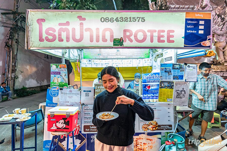 โรตีป้าเด ร้านร้านสตรีทฟู้ดข้างทางชื่อดังที่ได้สัญลักษณ์ บิบ บิบ กูร์มองด์ จากมิชลินไกด์ การันตีความอร่อย คุ้มค่าคุ้มราคา ร้านป้าเดเปิดขายมากว่า 37 ปีแล้ว พร้อมกับเมนูมากมายถึง 20 กว่าเมนูกันเลย ความพิเศษของโรตีป้าเดจะอยู่ที่ตัวแป้งที่กรอบนอกนุ่มใน ใครที่กินเจหรือมังสวิรัตก็สามารถกินได้เพราะแป้งของร้านไม่มีส่วนผสมของไข่และนม ส่วนเมนูที่แนะนำให้ลองชิมกันคือโรตีหมักเนย แป้งนุ่มหอมเนยบอกเลยว่าไม่ควรพลาด และอีกเมนูหนึ่งที่ต้องสั่งเลยเช่นกันคือโรตีมะตะบะไก่ ที่ตัวไส้หอมกลิ่นเครื่องเทศมากๆ ร้านป้าเดมีหลายสาขาแต่ถ้าอยากเจอป้าเดตัวจริงไปที่สาขาถนนท่าแพหน้าวัดมหาวันไปต่อคิวลิ้มรสความอร่อยกันรับรองว่าถูกใจแน่นอน