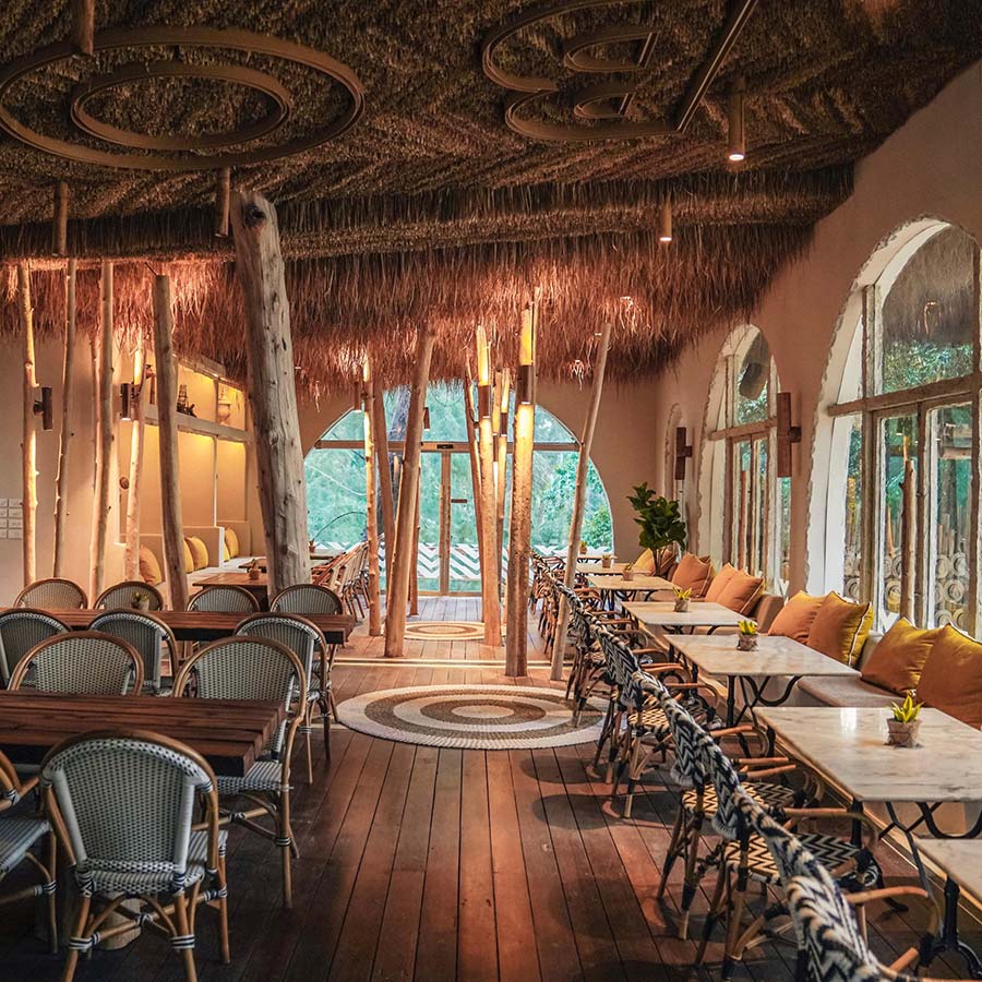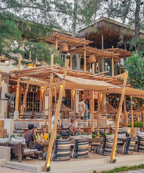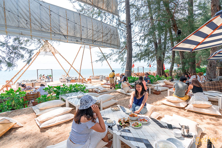 Glass House Boho ร้านริมทะเลที่พกเอาความชิลล์และบรรยากาศมาเต็มร้อย อีกทั้งยังมีดีไซน์ที่โดดเด่นเป็นเอกลักษณ์ ด้วยความเป็นชนเผ่าผสมสไตล์ Bohemian เมื่อรวมกับภาพผืนทรายและท้องทะเล บอกเลยว่าเข้ากันสุดๆ สายโซเชียลต้องอดใจไม่ไหวแชะภาพกันรัวๆ แน่นอน และร้านไม่ได้แค่ถ่ายรูปสวย แต่เมนูความอร่อยก็มีให้เลือกเพียบ สายซีฟู้ดมาแล้วต้องสั่งกุ้งกลาสเฮาส์ ทะเลลาวา และเมี่ยงปลากะพง บอกเลยว่าอาหารทะเลสดใหม่ ฉ่ำสุดๆ และพิเศษสุดๆ ในช่วงเย็นเราสามารถเห็นพระอาทิตย์ตกดินได้แบบใกล้ชิด นั่งฟังเสียงคลื่นเพลินๆ ชนแก้วกันเล็กน้อย บอกเลยว่าเป็นร้านที่เหมาะกับการเป็นมื้อพิเศษมาก
