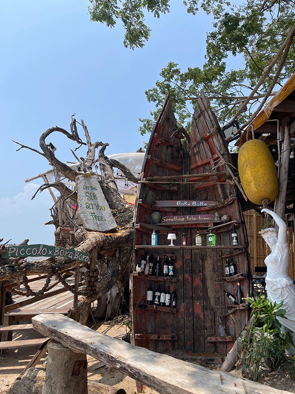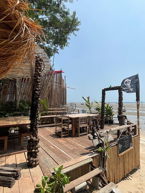 Bora Bora ร้านริมทะเล ชลบุรีตั้งอยู่บนหาดส่วนตัว มีความเงียบสงบ และที่โดดเด่นก็คือการออกแบบและของตกแต่งต่างๆ ไม่ว่าจะเป็นธงโจรสลัด เรือร้าง ถังไม้บาร์เรล จำลองบรรยากาศออกมานึกว่าอยู่หลงไปอยู่บนเกาะร้างจริงๆ อีกทั้งมุมถ่ายรูปก็จัดเต็ม สามารถถ่ายรูปได้ทุกจุด สำหรับโซนที่นั่งส่วนใหญ่จะเป็นโอเพ่นแอร์ ใครมาแล้วก็ไม่ต้องกลัวร้อน เพราะร้านมีต้นไม้ใหญ่ให้ร่มเงาและมีพื้นที่เปิดโล่ง ให้ได้รับลมทะเลแบบเต็มๆ และเห็นว่าร้านชิลล์ๆ แบบนี้แต่เมนูอาหารคือจัดเต็มมาก ซีฟู้ดแบบเน้นๆ ไม่ว่าจะเป็นปลาทูทอดราดน้ำปลา ห่อหมกทะเลลูกมะพร้าว กุ้งอบวุ้นเส้น ทะเลผัดฉ่า ถ้ามาแล้วก็แนะนำให้นั่งยาวๆ ไปยันดึก สั่งค็อกเทลมาจิบอีกเล็กน้อย บอกเลยบรรยากาศยิ่งชิลล์ขึ้นไปอีก