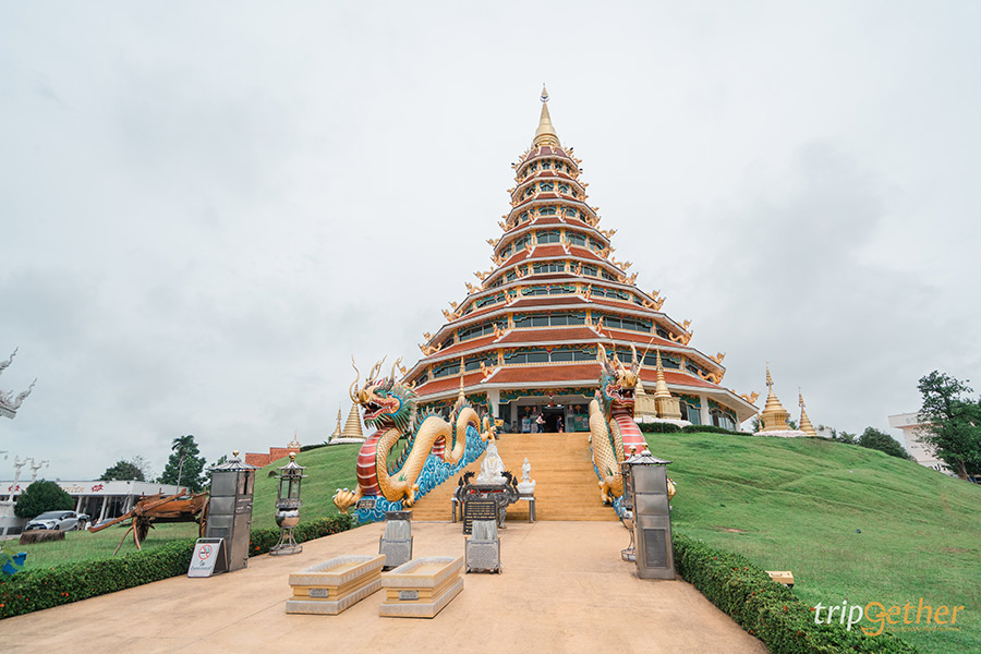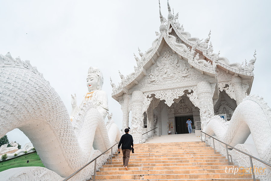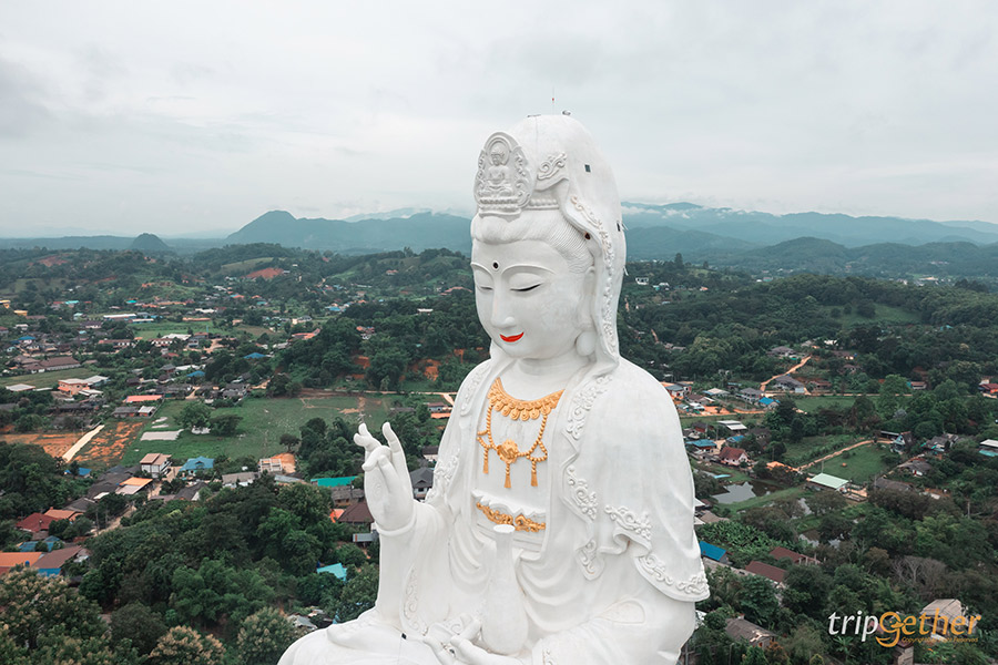 วัดห้วยปลากั้ง เป็นที่ประดิษฐานของ พระโพธิสัตว์กวนอิมปางพบโชค ที่มีขนาดความสูงถึง 79 เมตร เป็นประติมากรรมแบบจีผสมผสานกับล้านนา ที่วิจิตรงดงามมาก แถมยังเป็นหนึ่งในเจ้าแม่กวนอิมที่มีขนาดใหญ่ที่สุดในไทยอีกด้วย และสามารถขึ้นเพื่อชมวิวทิวทัศน์ที่สวยงามของจังหวัดเชียงรายได้