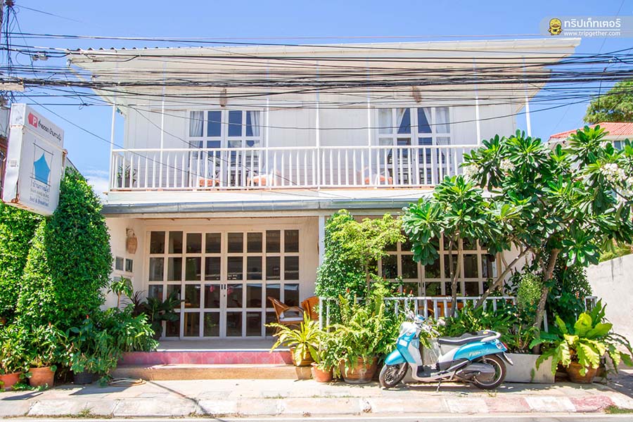 บ้านฟ้าใส ที่พักริมทะเลสีฟ้าใสสมชื่อ ตัวที่พักตกแต่งด้วยสไตล์สุดวินเทจที่ให้อารมณ์เหมือนบ้านชาวประมงโดดเด่นด้วยการใช้สีฟ้าและสีขาวเพื่อให้เข้ากับทะเลและท้องฟ้า อีกทั้งยังอยู่ติดกับท่าหน้าบ้านสามารถเดินทางได้สะดวกสบายและตั้งอยู่ท้ายซอยให้บรรยากาศที่พักเงียบสงบและมีความเป็นส่วนตัว ภายในห้องพักยังตกแต่งด้วยสไตล์เรียบง่ายเน้นการพักผ่อนอย่างแท้จริง แถมที่ด้านหน้าห้องยังมีระเบียงให้ออกมานั่งรับลมทะเลแบบชิลล์ๆ มุมนี้ลองหาหนังสือดีๆ สักเล่มพร้อมกับฟังเพลงโปรดสักเพลงรับรองว่าไม่มีอะไรที่ชิลล์ไปกว่านี้อีกแล้ว