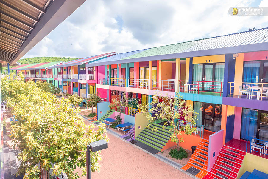 ราชาวดี รีสอร์ท มูนไลท์ เกาะล้าน อีกหนึ่งที่พักเกาะล้าน สีสันสดใสโดดเด่นเห็นมาแต่ไกล ตั้งอยู่ใกล้ท่าเรือหน้าบ้านเดินทางสะดวก แถมบรรยากาศก็ยังเงียบสงบ ตัวที่พักยื่นไปกลางทะเล แบบว่าชมวิวทะเลจากในห้องพักกันเลย ภายในห้องก็ตกแต่งได้อย่างเรียบง่าย แต่ละห้องจะมีดาดฟ้าส่วนตัวพร้อมเตียงผ้าใบให้นั่งชมวิวเกาะล้านกันแบบเพลินๆ หรือจะจัดปาร์ตี้เบาๆ ก็ยังสะดวกสบาย อีกทั้งยังมีมุมให้พักผ่อนชิลล์ๆ อีกด้วย เป็นอีกหนึ่งที่พักมีดาดฟ้าวิวทะเลที่ต้องไปโดนให้ได้สักครั้ง
