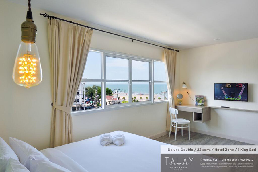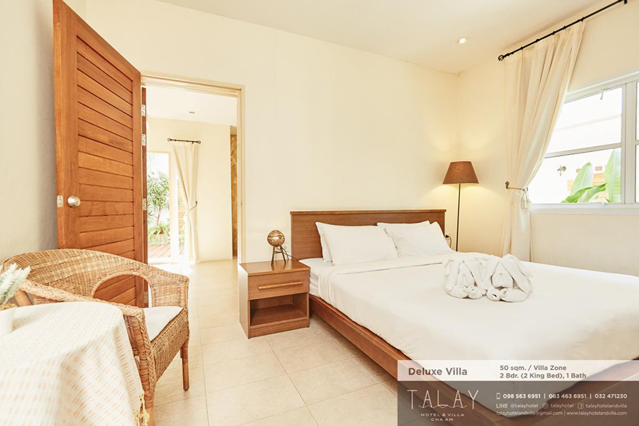 ทะเล โฮเทล & วิลล่า ที่พักบรรยากาศสุดชิลล์ที่ตกแต่งด้วยสไตล์สุด Cozy ที่นี่เน้นการใช้สีขาว ฟ้า และน้ำตาลในการตกแต่งและยังเป็นสีพาสเทลที่ให้ความรู้สึกนุ่มนวลและสบายตาสุดๆ สำหรับตัวห้องพักก็มีทั้งแบบ Superior, Deluxe, Deluxe Seaview และ Family ที่ไม่ว่าจะมาเป็นครอบครัวหรือคู่รักก็รับรองว่าจะต้องฟินสุดๆ ภายในห้องพักยังตกแต่งได้อย่างน่ารักและยังคุมโทนสีฟ้า ขาว และน้ำตาล แถมยังครบครันไปด้วยสิ่งอำนวยความสะดวก เพียงแค่เดินออกไปหน้าโรงแรมก็จะได้เจอกับหาดทรายและน้ำทะเล ที่นี่เป็นอีกหนึ่งที่พักสบายๆ ที่อยากแนะนำให้เพื่อนๆ มาพักผ่อนกันสักครั้ง