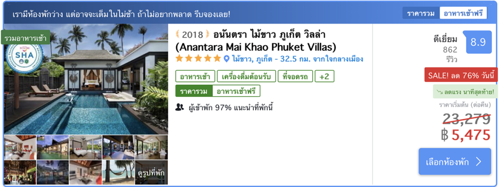 ที่พักภูเก็ตราคาไม่แพง(ราคาอ้างอิงจาก Agoda.com วันที่ 6 มกราคม 2564)